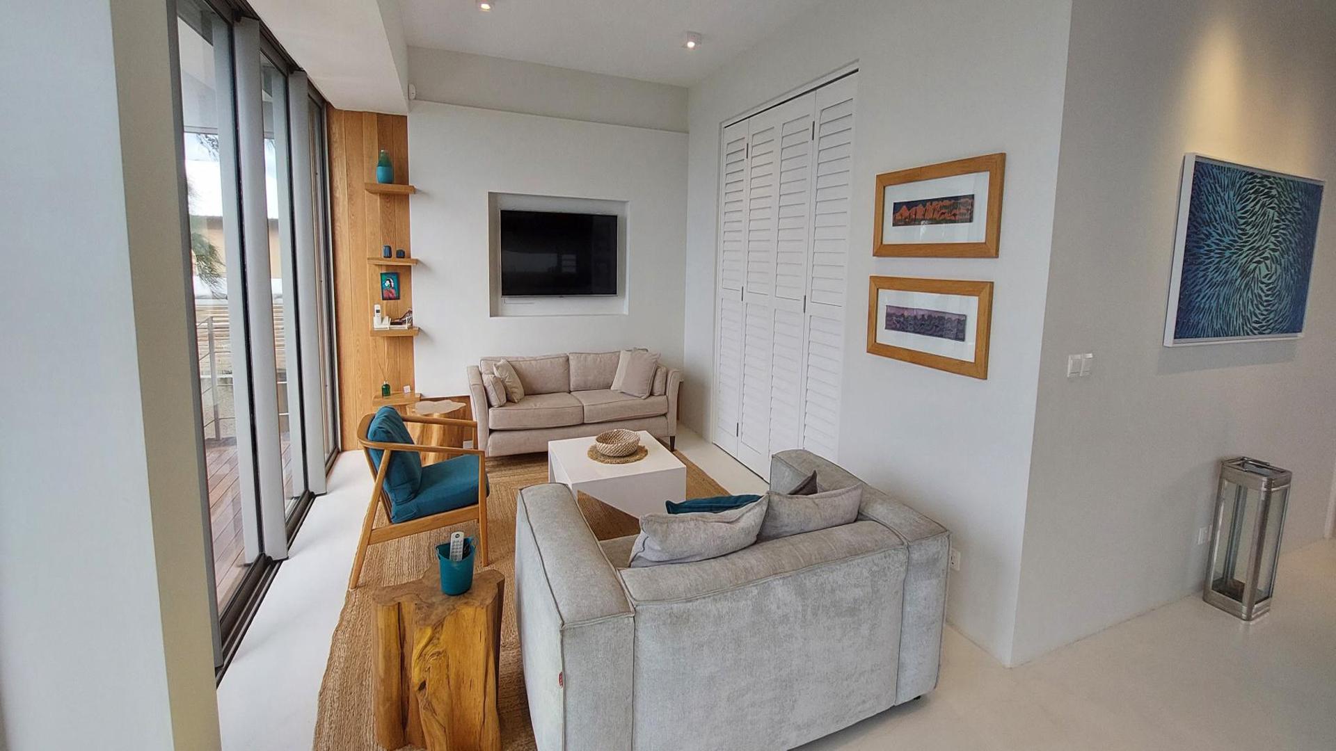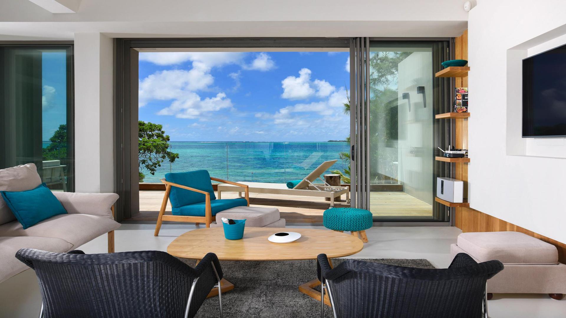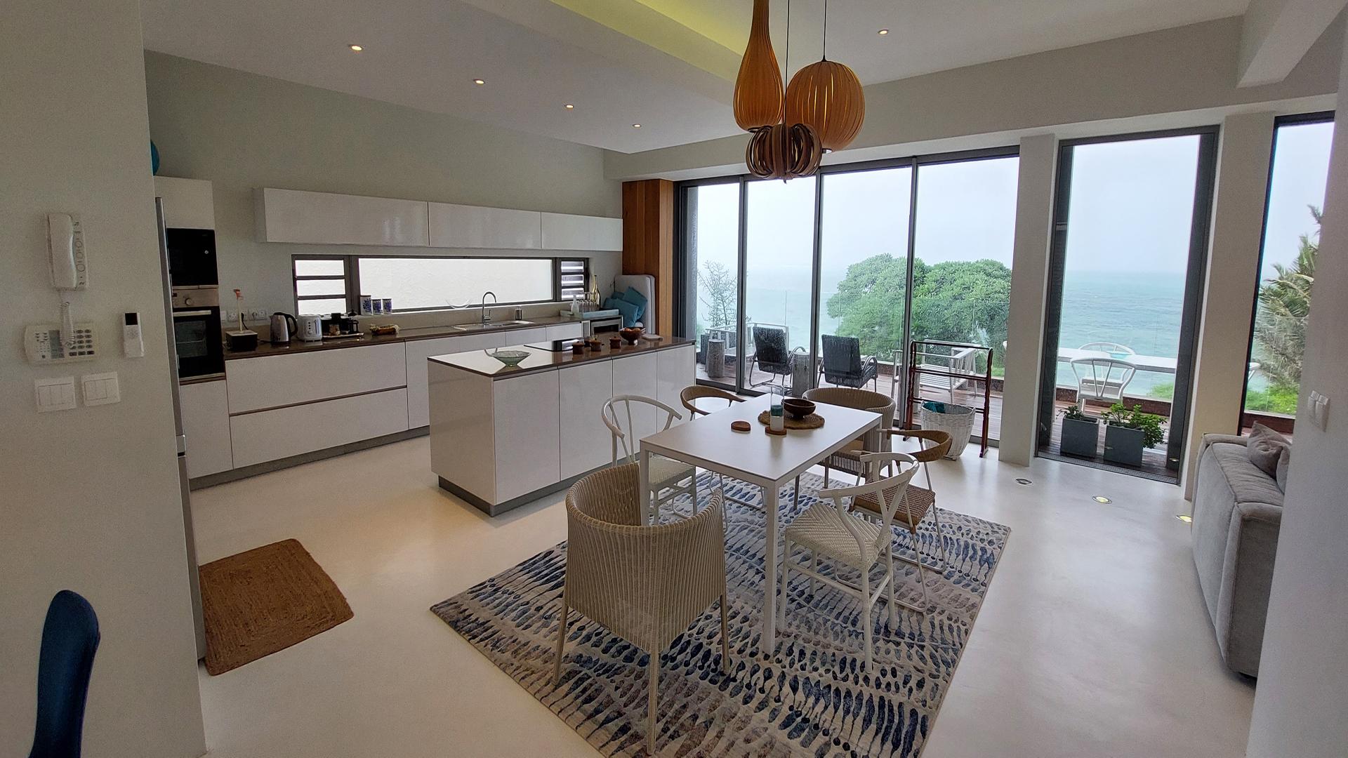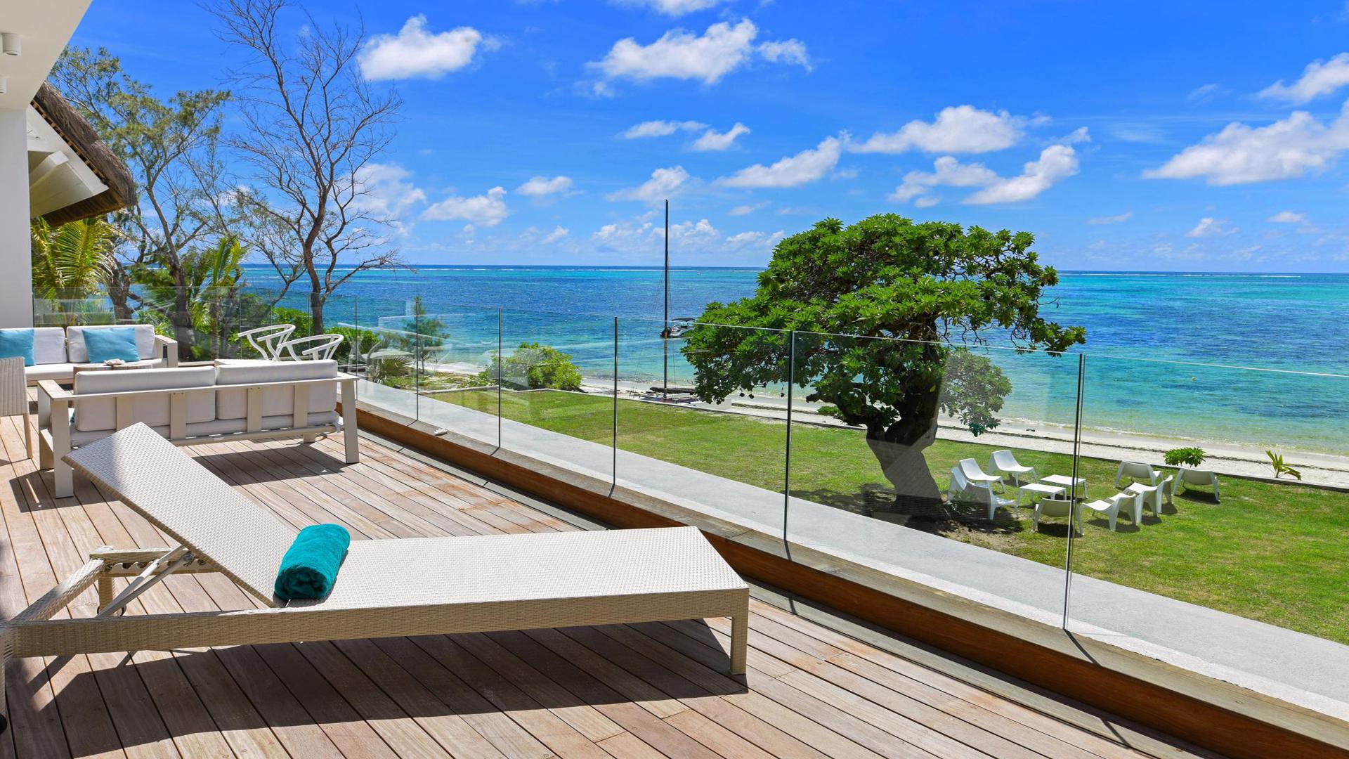 A showpiece beachfront apartment, you will be blessed in this luxurious cocoon. As you walk into this first-floor 4-bedroom apartment, you will be blown away by the views on the turquoise lagoon of Poste Lafayette, on the untouched North-East Coast of Mauritius.For more convenience, you can access the apartment using the stairs or a lift. Once you step out of the lift, you will be stunned by the clever concept, where the living area is sea-facing, offering unobstructed views. The main living area is spacious, with high ceilings left rough to add to the style. There is an open-plan kitchen that leads to an outdoor terrace with a deck. From the terrace, there is an exterior staircase giving you direct access to the garden and the beach. Â At the back of the apartment, you will find the kitchen, a pantry, a laundry room, and an outdoor corridor service area that leads to the staff toilets. There is also a back-covered terrace area to chill next to the main living room. The corridor leads to the 4 bedrooms that are all en-suite, including the master bedroom which has its own dressing.For your leisure, this small high-end complex has its own pool house with a huge swimming pool, and a covered area with a bar and dining facilities.The North-East Coast is un-spoilt, yet remains close to shopping malls, and golf courses, and is only 30 minutes from Grand Baie.Contact us for more informationÂ