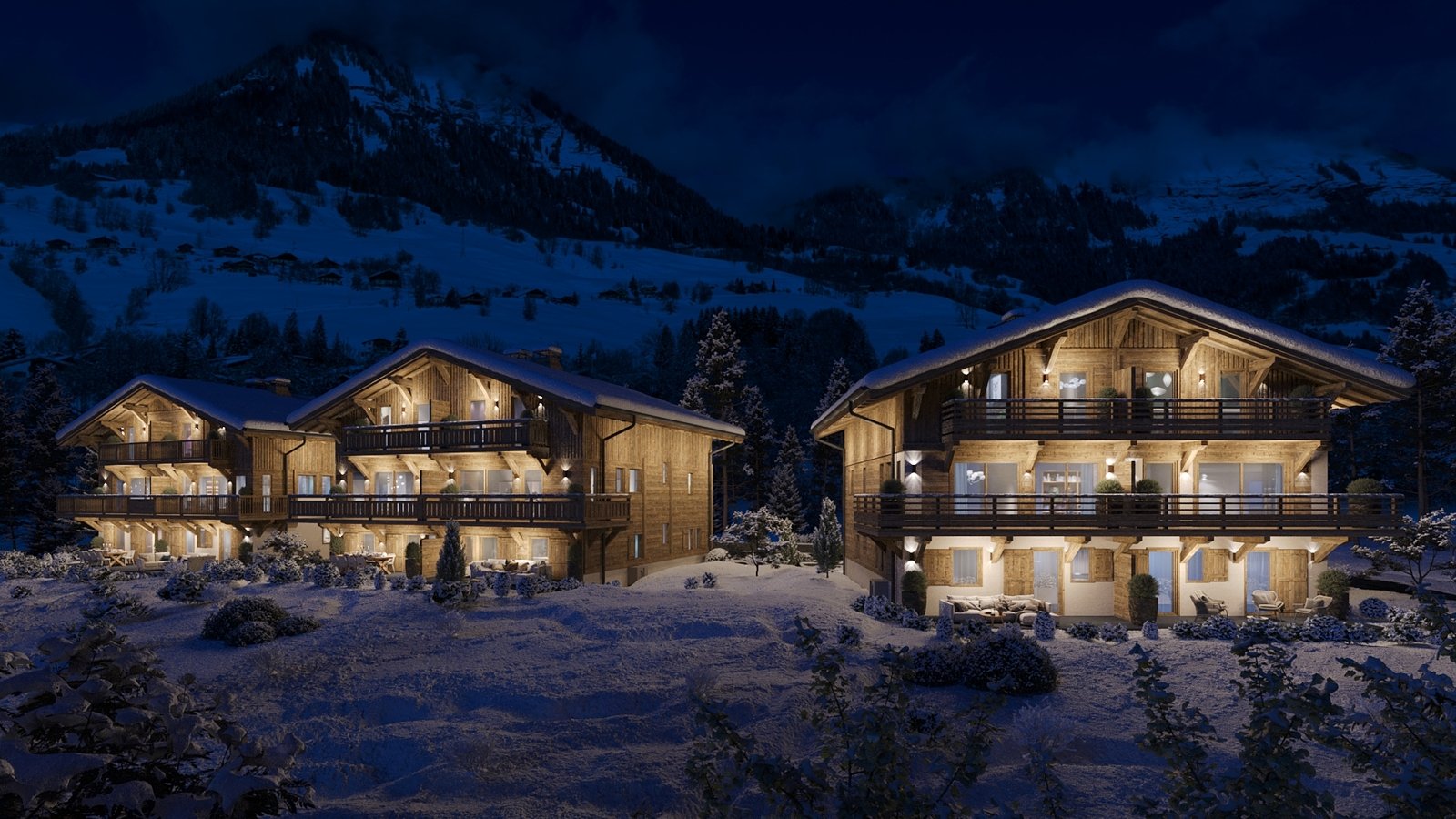 Designed for tranquility and well-being, this property is part of an intimate residence of three chalets, each divided into two semi-detached homes, ensuring privacy and serenity.