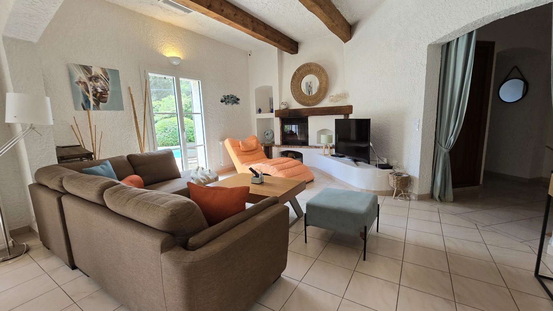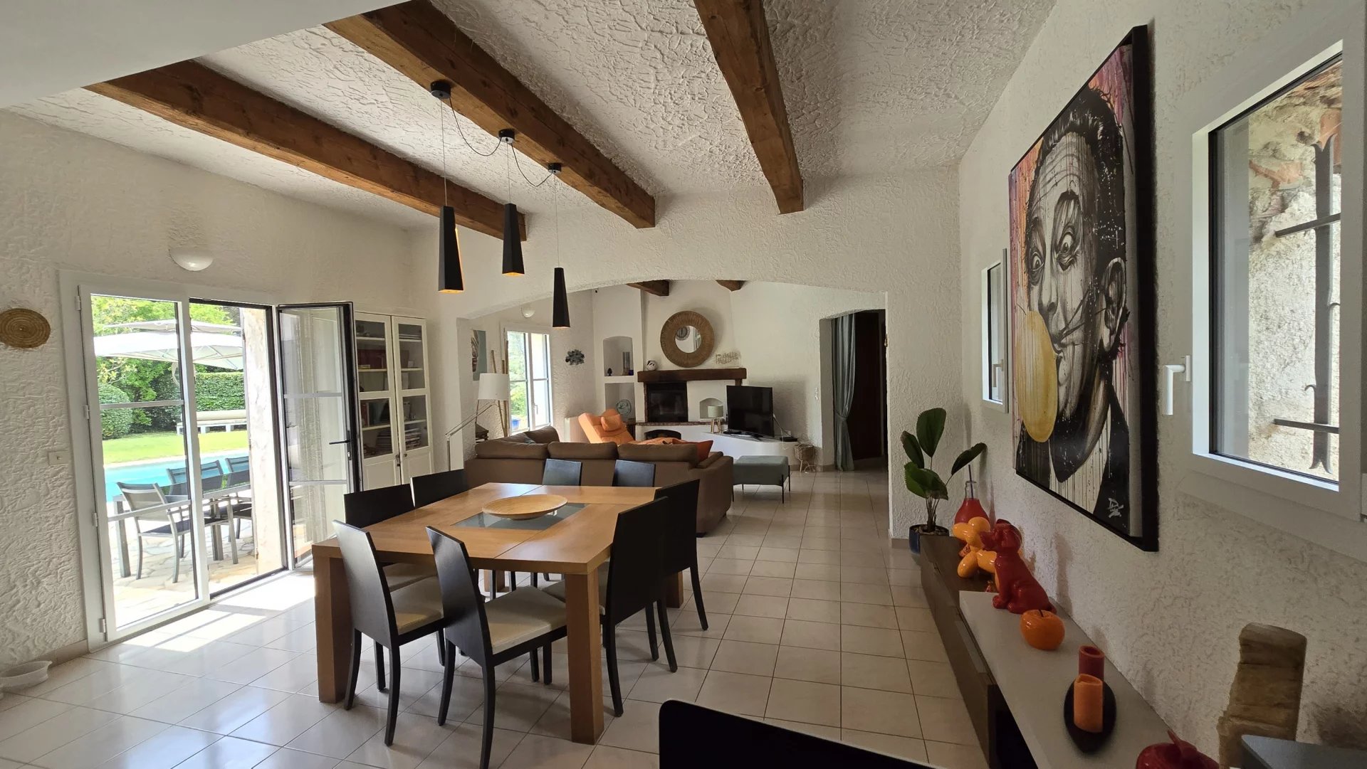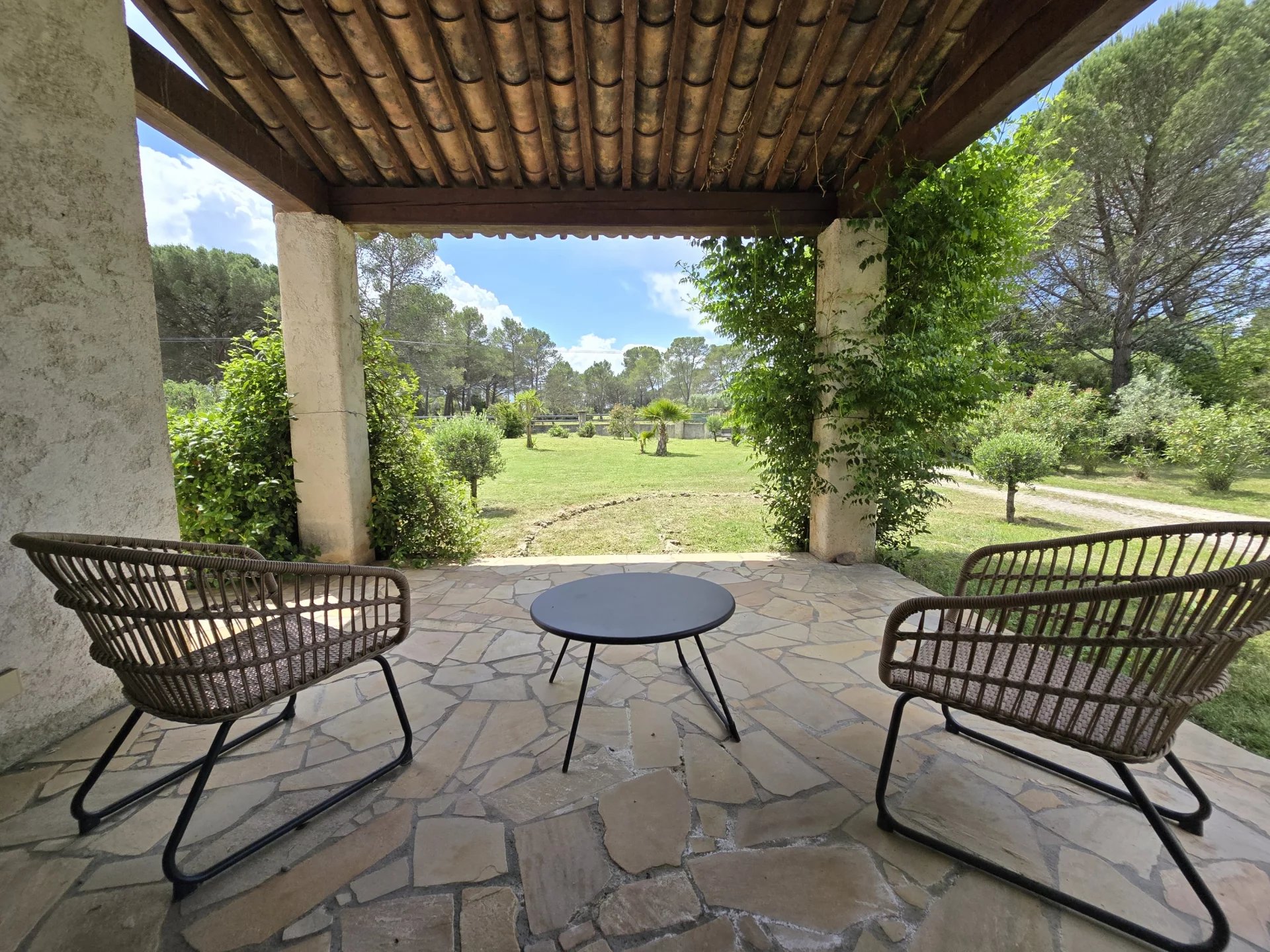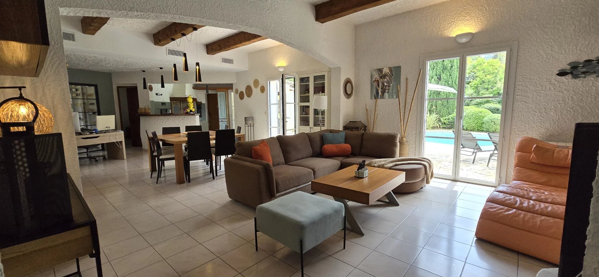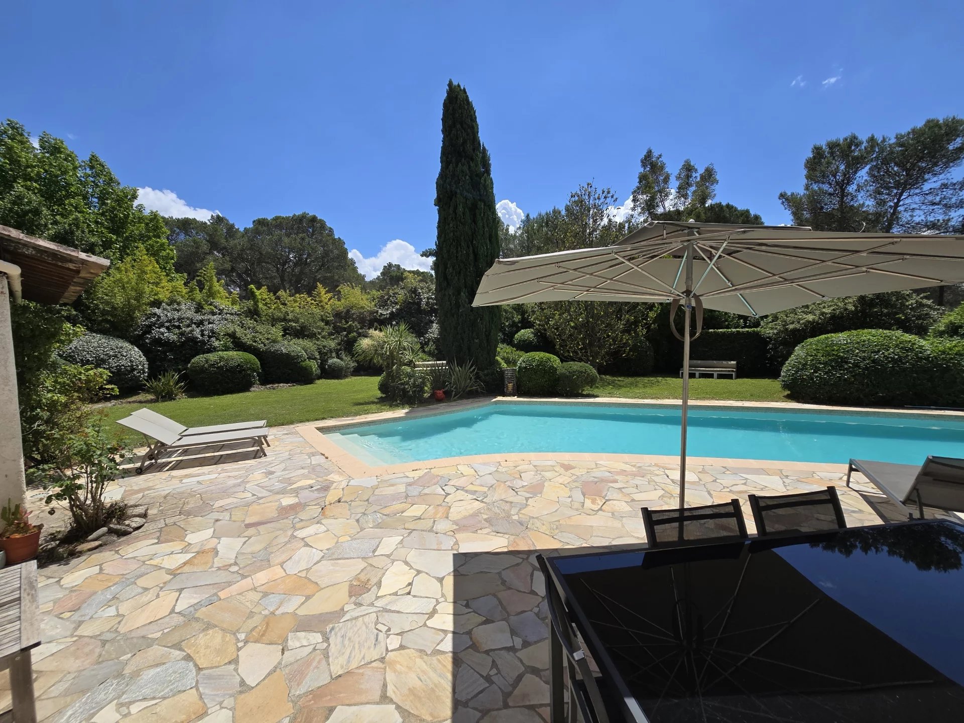 Large swimming pool surrounded by terraces offered in the sun, south facing.