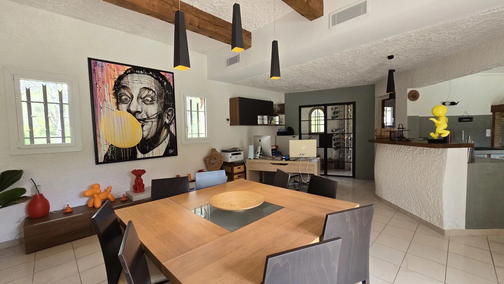 Accommodation consisting of 6 main rooms : entrance, guest toilet, large living room with fireplace and wine cellar area, semi-