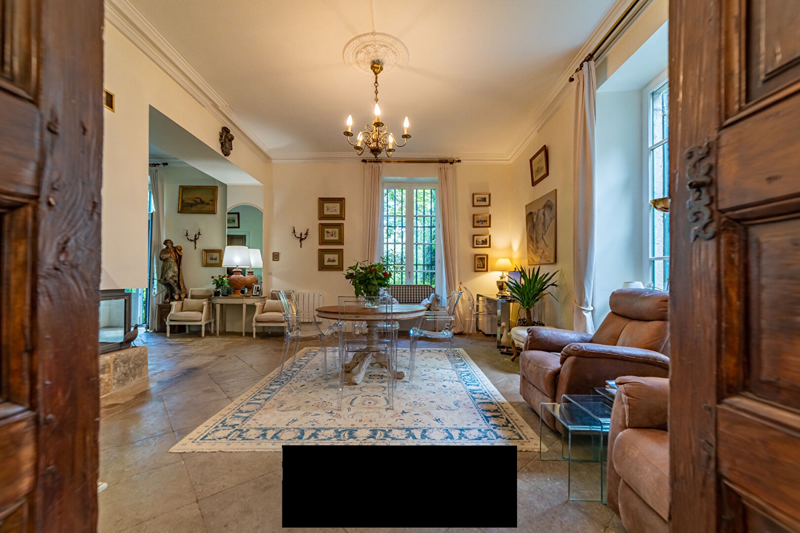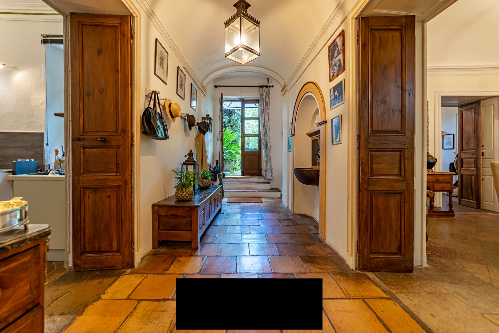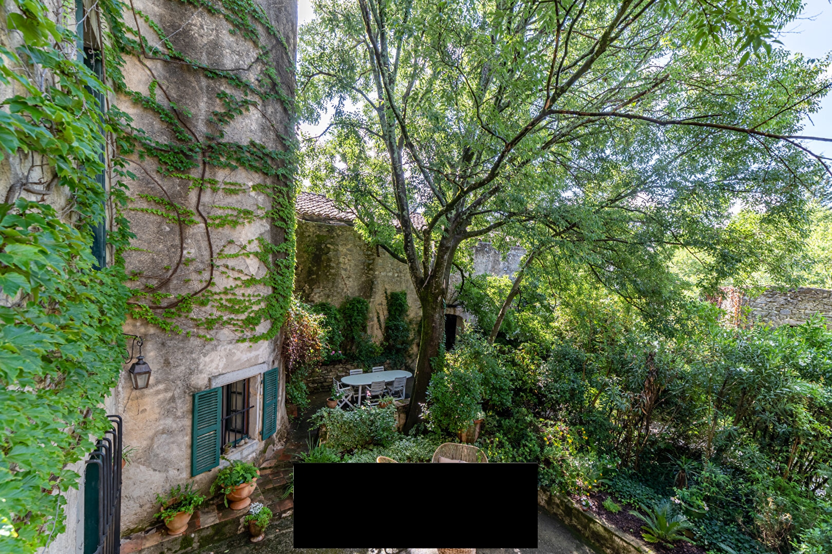 After admiring the castle’s superb gate, a true masterpiece of ironwork from the Louis XVI period, we discover the incredible charm of the property’s interior courtyard, adorned with lush vegetation bringing freshness and serenity to the place.