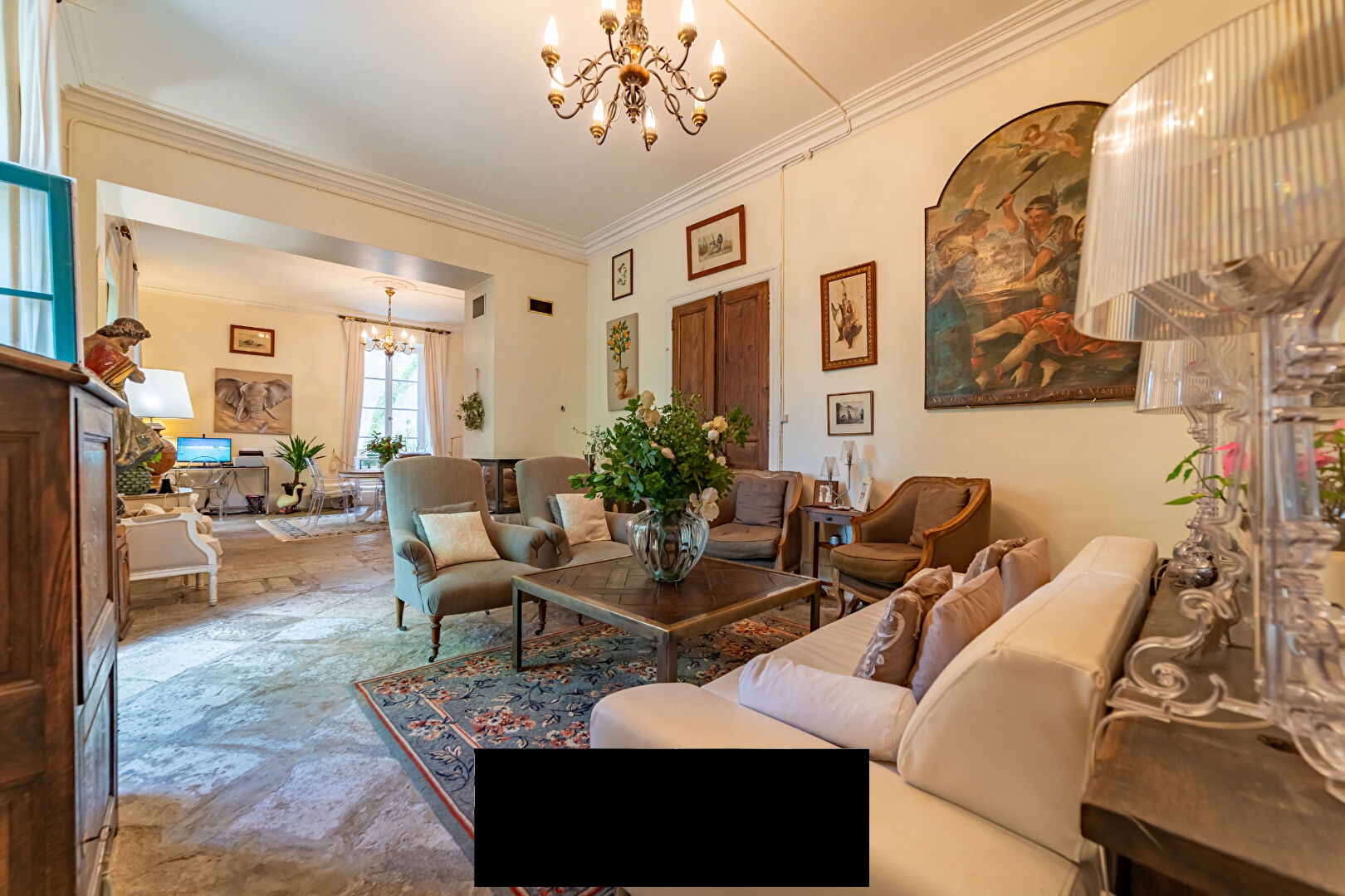 Inside, you will be seduced by an extremely warm atmosphere, large and elegant living rooms, high ceilings and an independent kitchen equipped in the spirit and respect of the old residence. The historical identity is preserved with several style fireplaces and an elegant staircase giving access to the different levels of the castle. On the first floor, a charming terrace offers a breathtaking view of the garden and the campanile. This exceptional property includes many large and beautiful bedrooms and bathrooms as well as two large convertible attics, opening wide the field of possibilities.