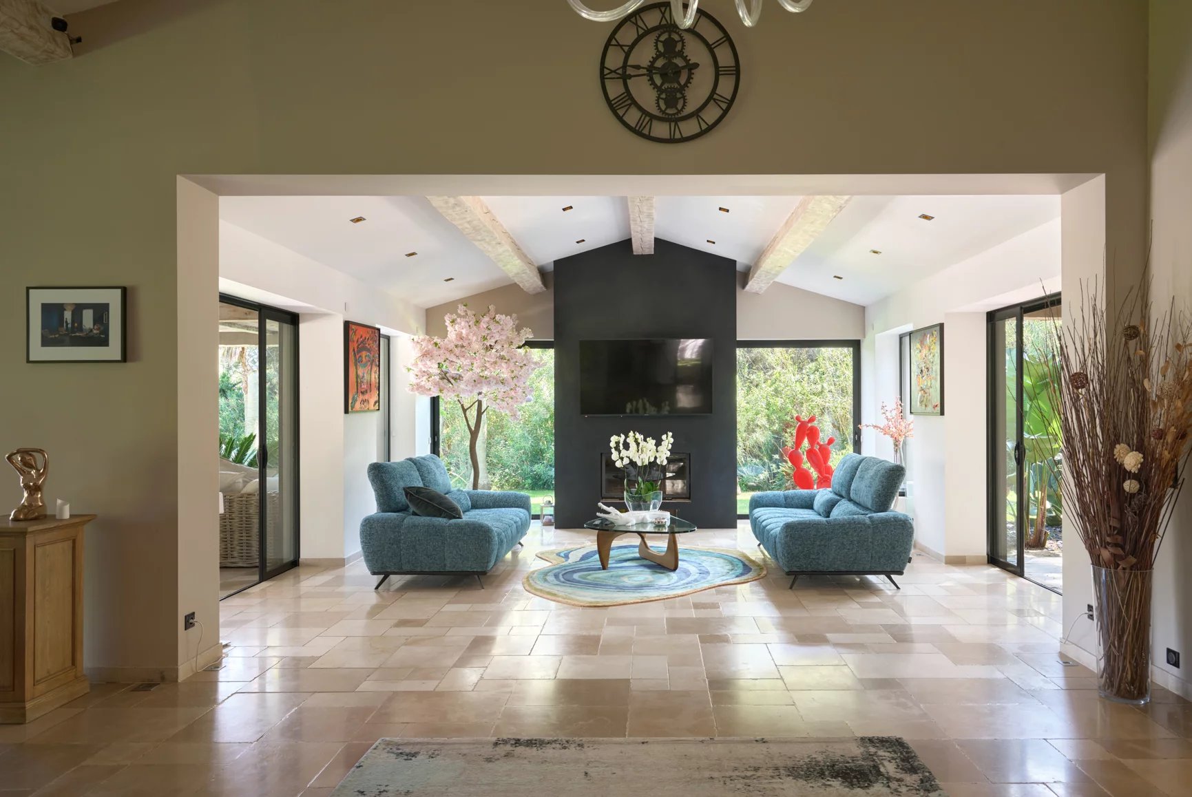 Ideally located just 150 meters on foot from the beaches of Pampelonne, out of sight, the single-storey Californian villa extends over approximately 450 m2, built on a beautiful flat plot of 2950 m2.