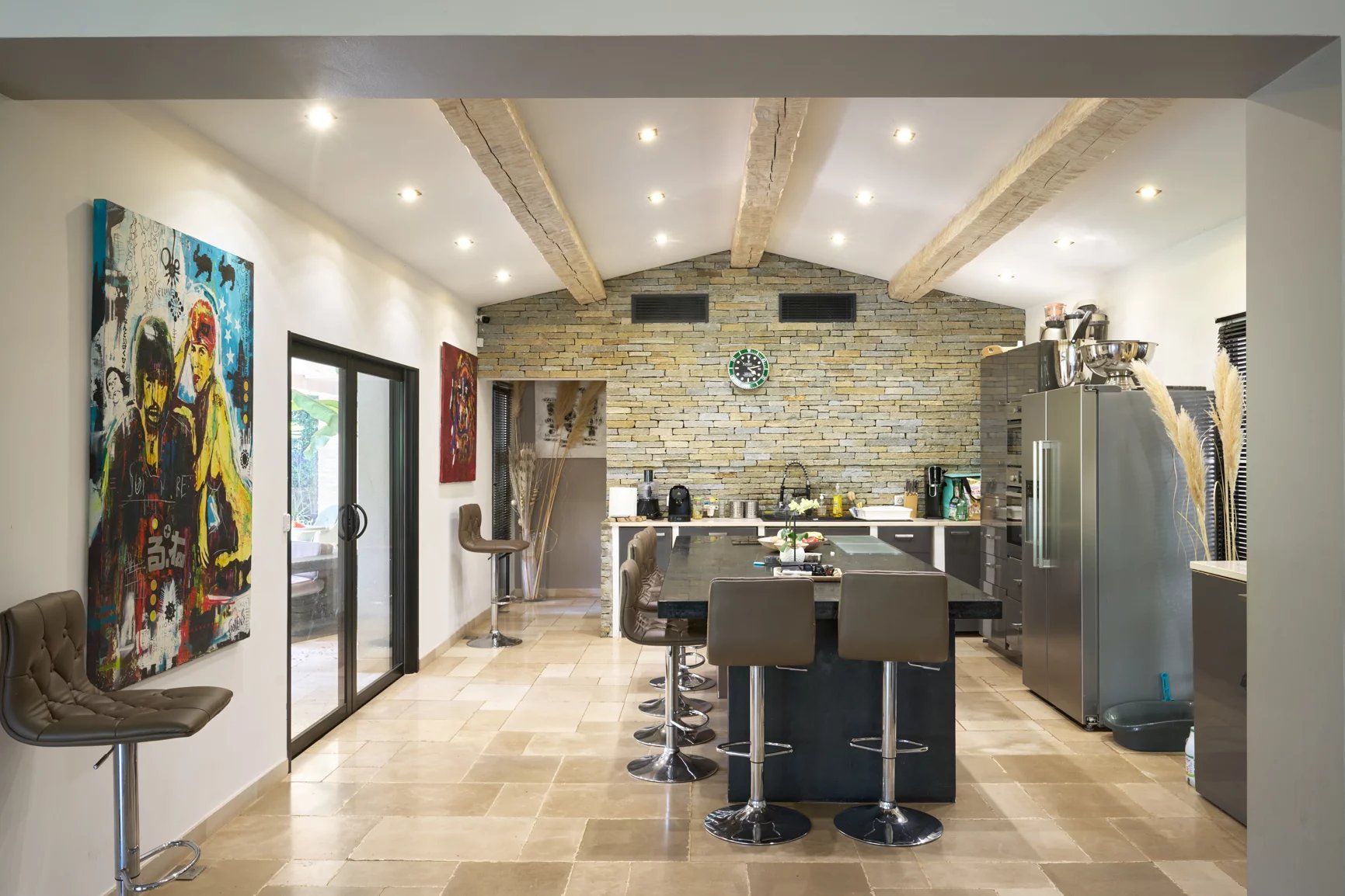 The villa also offers a wellness area with a gym and a hammam. In addition, it benefits from a large and magnificent heated mirror swimming pool, as well as a roof terrace offering a lovely view of the sea.