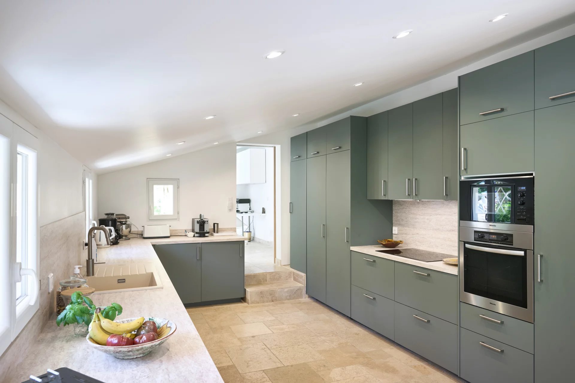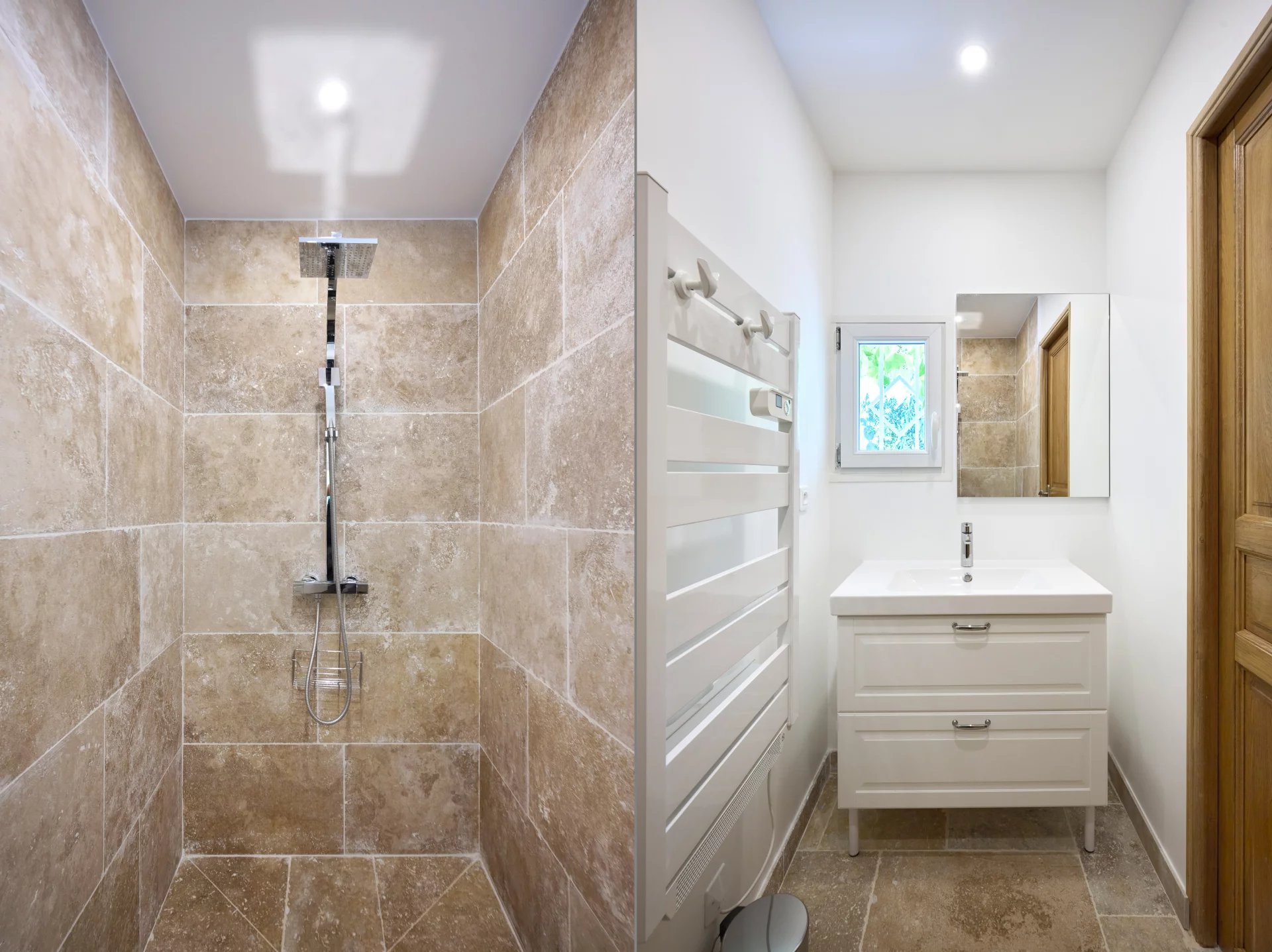 Facing full south, the property is built on completely flat landscaped land with an area of more than 2300 m2, decorated with a beautiful 11x4m heated swimming pool and its pool house as well as a petanque court.