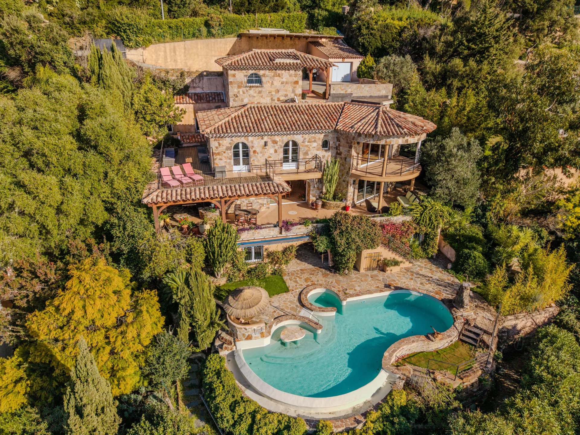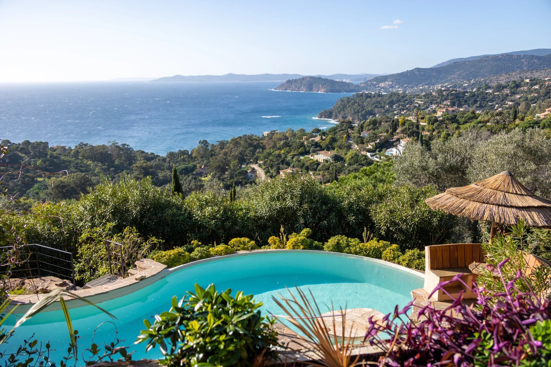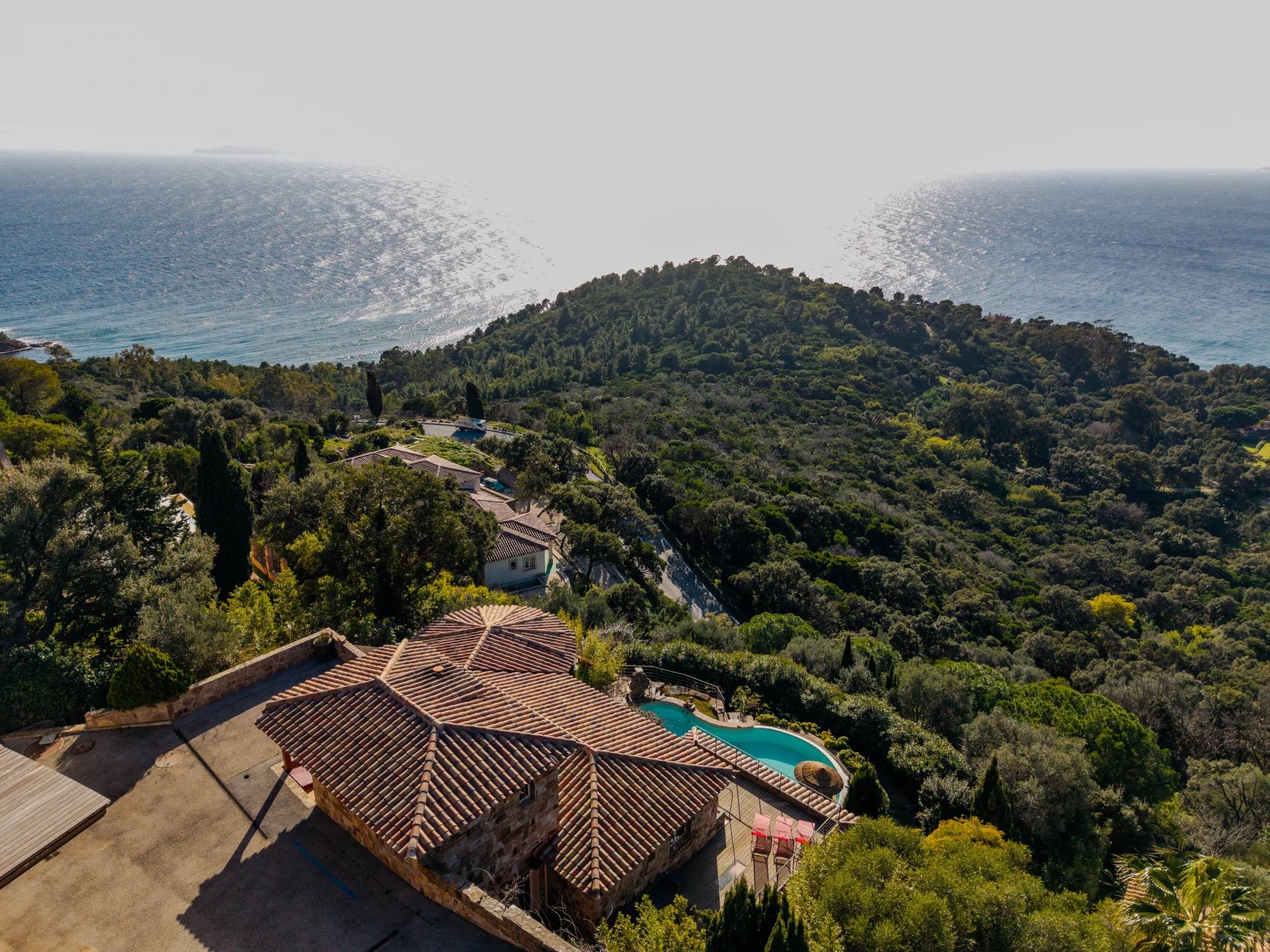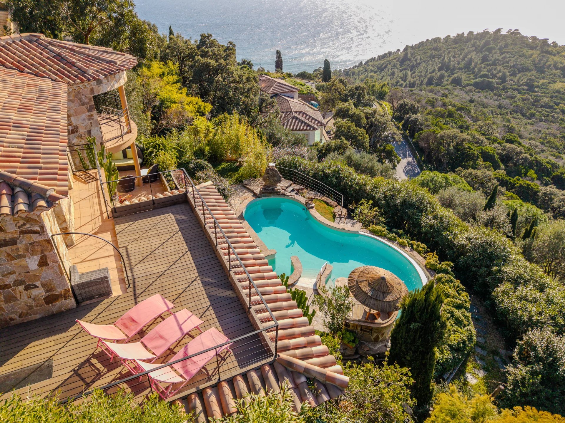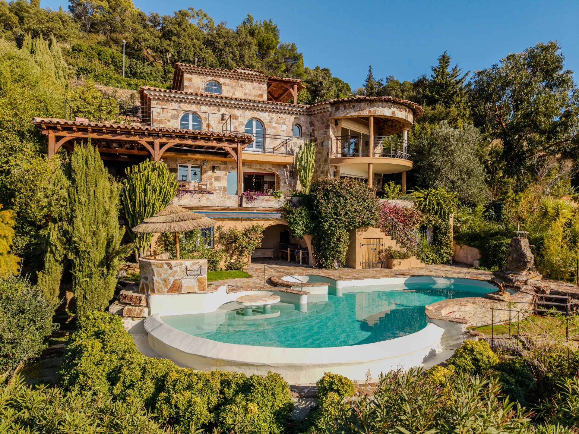 Located on the heights of Le Rayol Canadel, close to the village, this 380 m2 villa built on a 1700 m2 plot combines traditional charm with contemporary features.