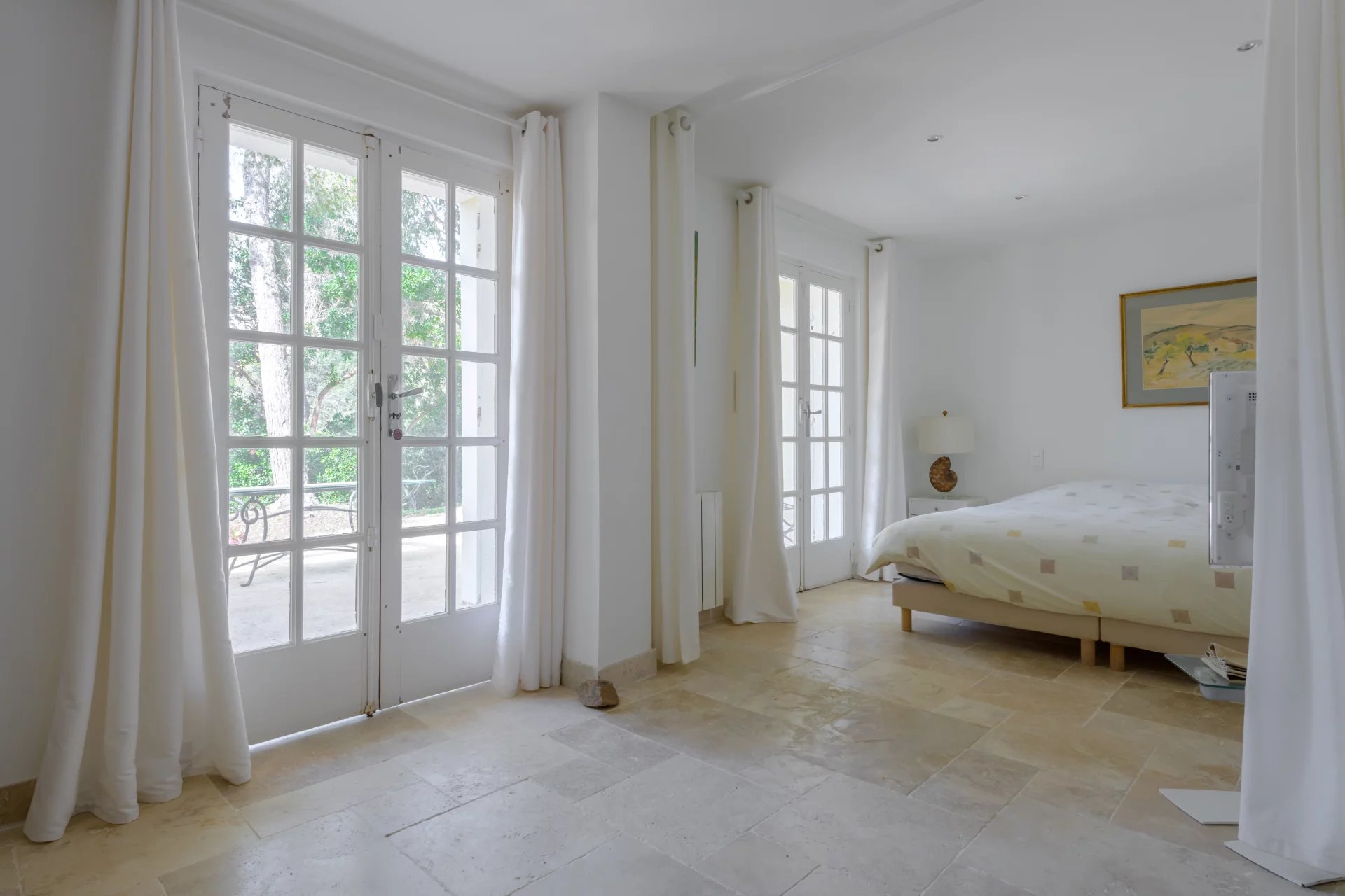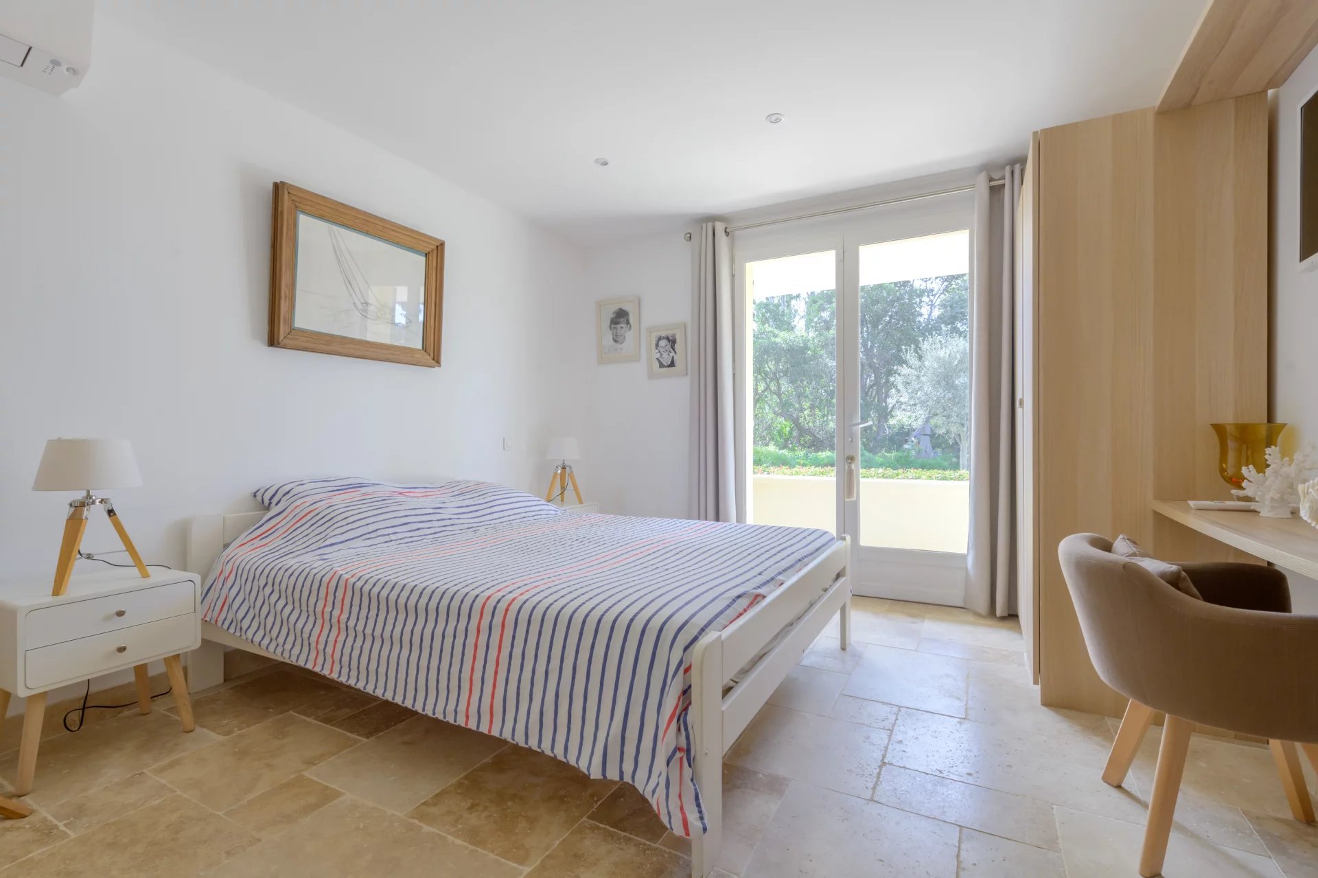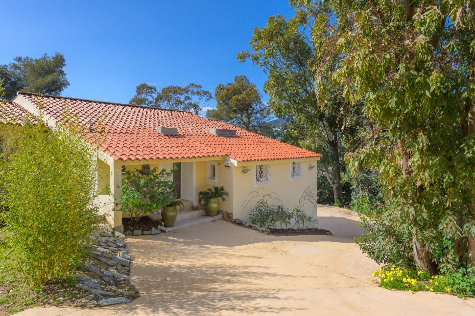 The lower part of the villa also offers an apartment comprising a living room/kitchen, a bedroom with fitted closet and a shower room with WC, all opening onto a terrace.