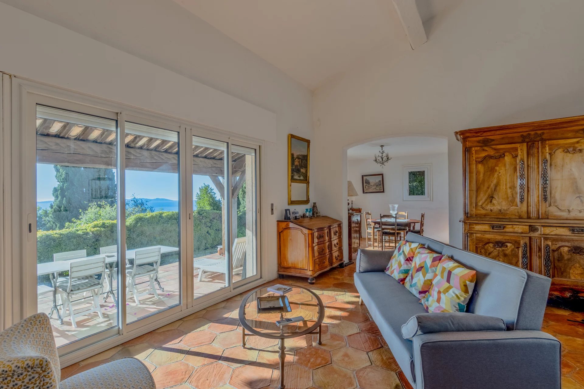 Dominating its surroundings from a generous 1,300 m2 plot, suitable for a swimming pool, this Provencal character villa enjoys panoramic sea views offering a permanent spectacle, between infinite horizon and natural light.