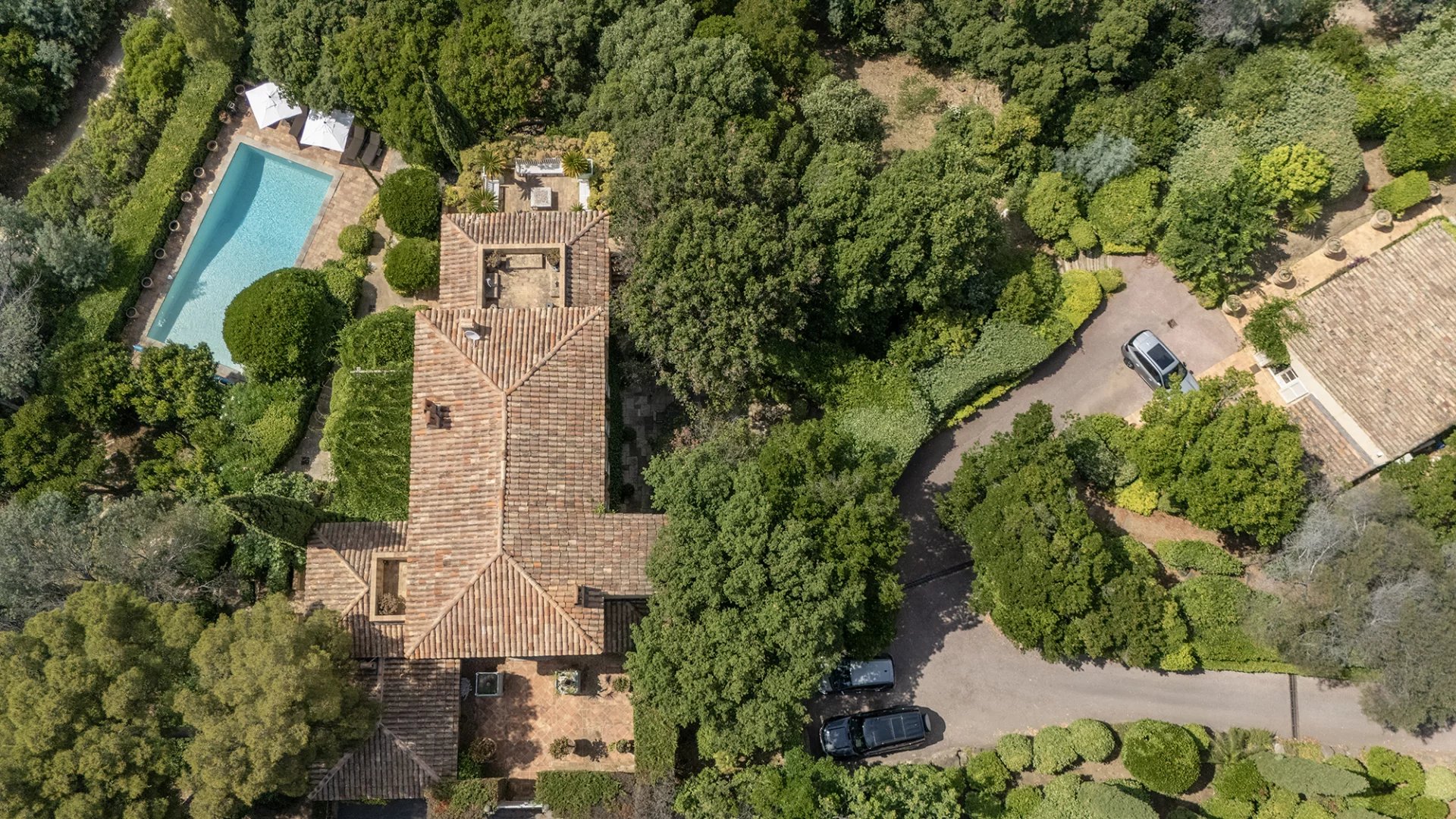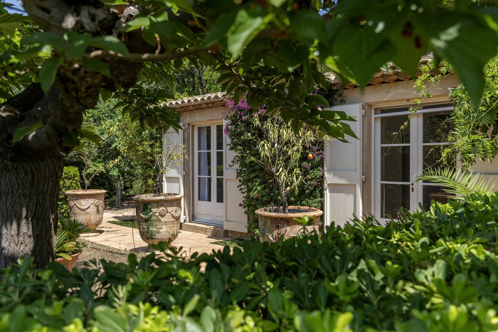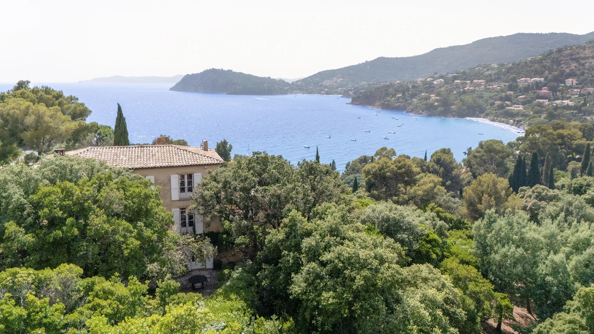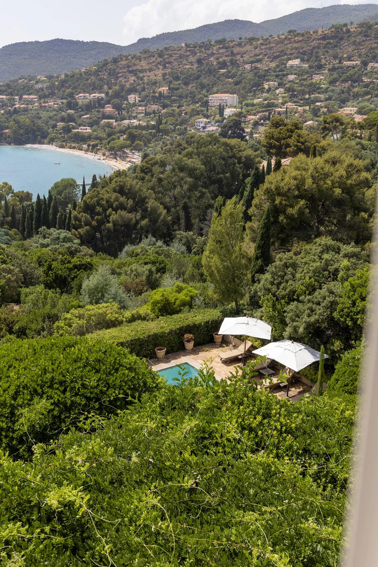 A remarkable property built in 1990 by Tropézien architect Georges Grateau and designed by the famous Parisian decorator Jean-Paul Faye, boasting marvellous views of the sea and Cap Negre.