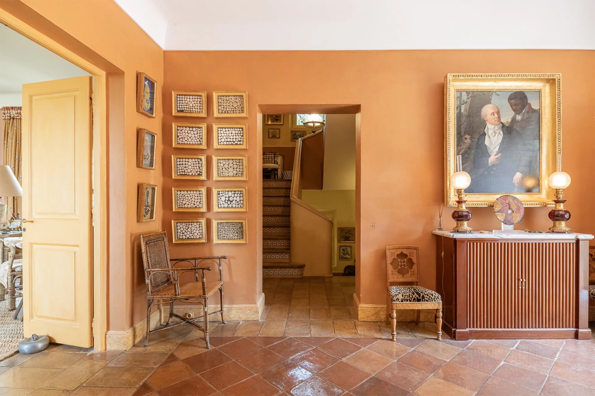 – First floor: entrance hall, lounge opening onto a double terrace, bar, cloakroom, separate wc