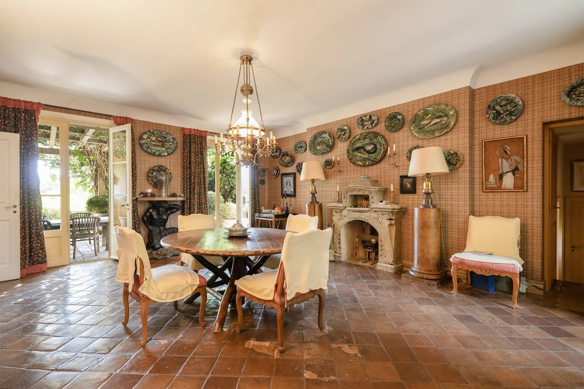 – Garden level: two en suite bedrooms with bathrooms and dressing rooms, dining room, kitchen, pantry, cold room, linen room, boiler room, 18 m2 cellar and a wc, south and north terraces;
