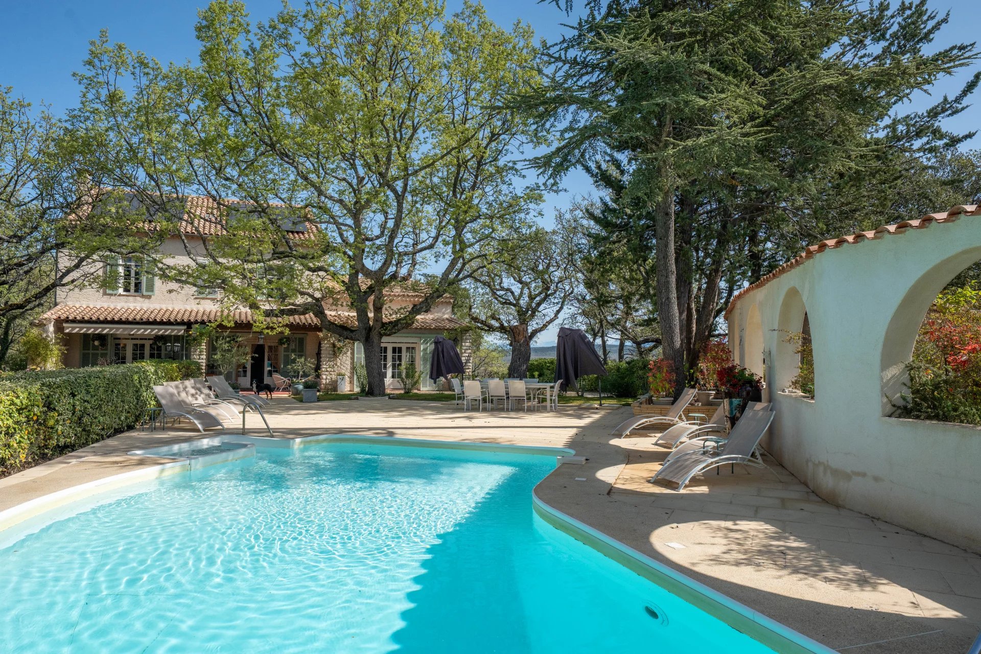 Located in the charming town of Rians, just 30 minutes from the vibrant city of Aix-en-Provence, this exceptional property with a swimming pool sits on a 7,000 m2 wooded plot, offering an enchanting living environment and absolute serenity.