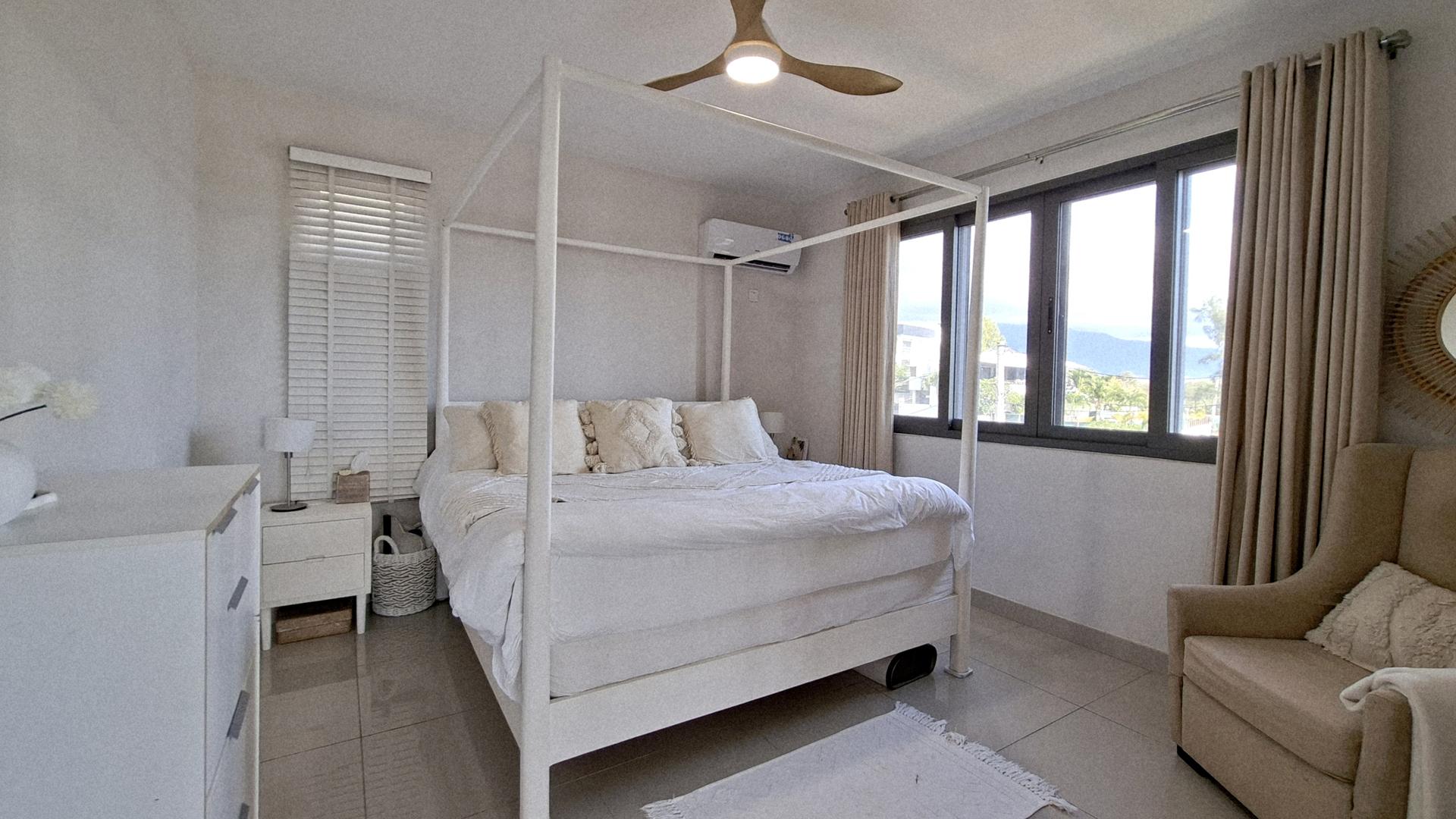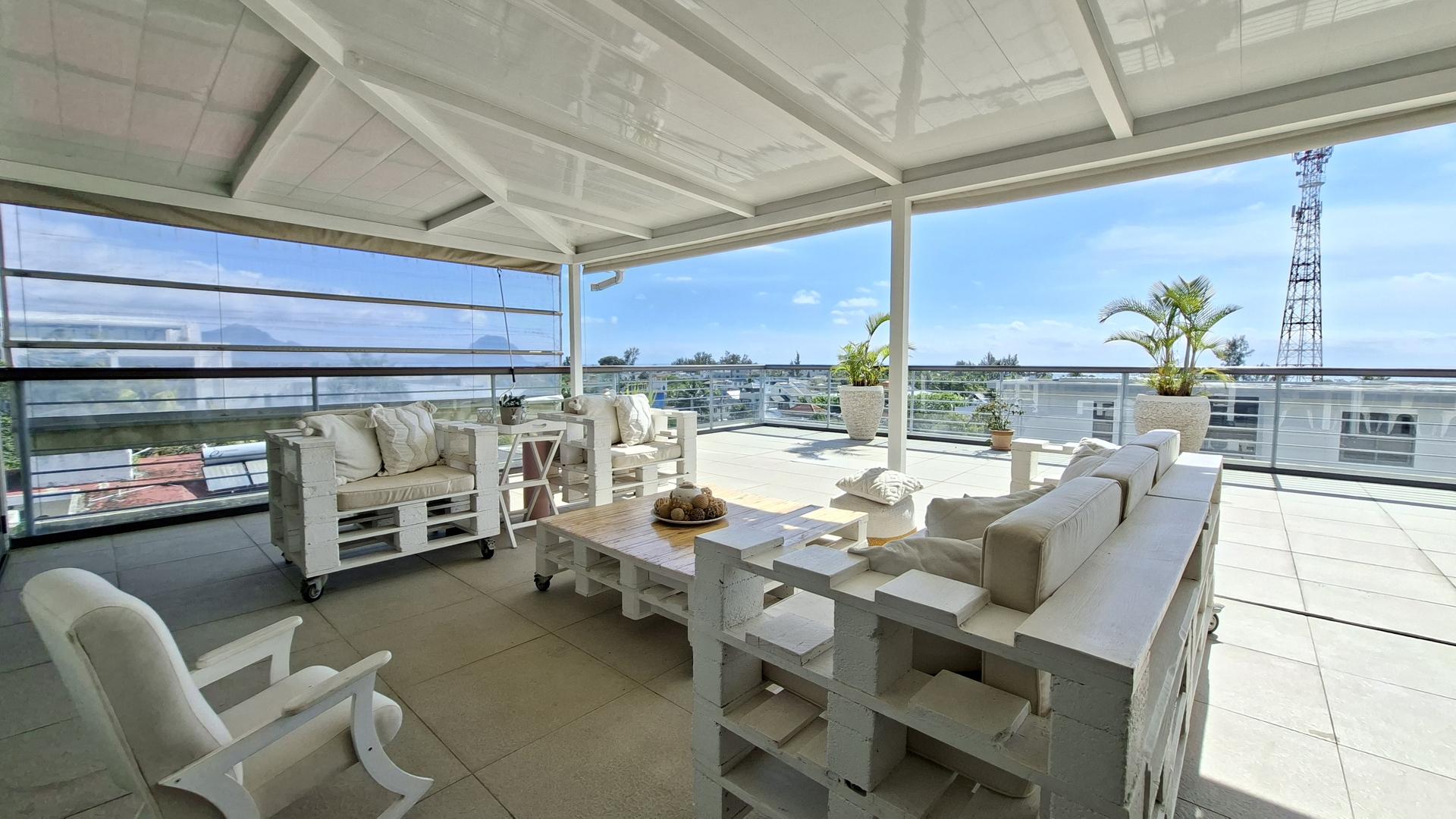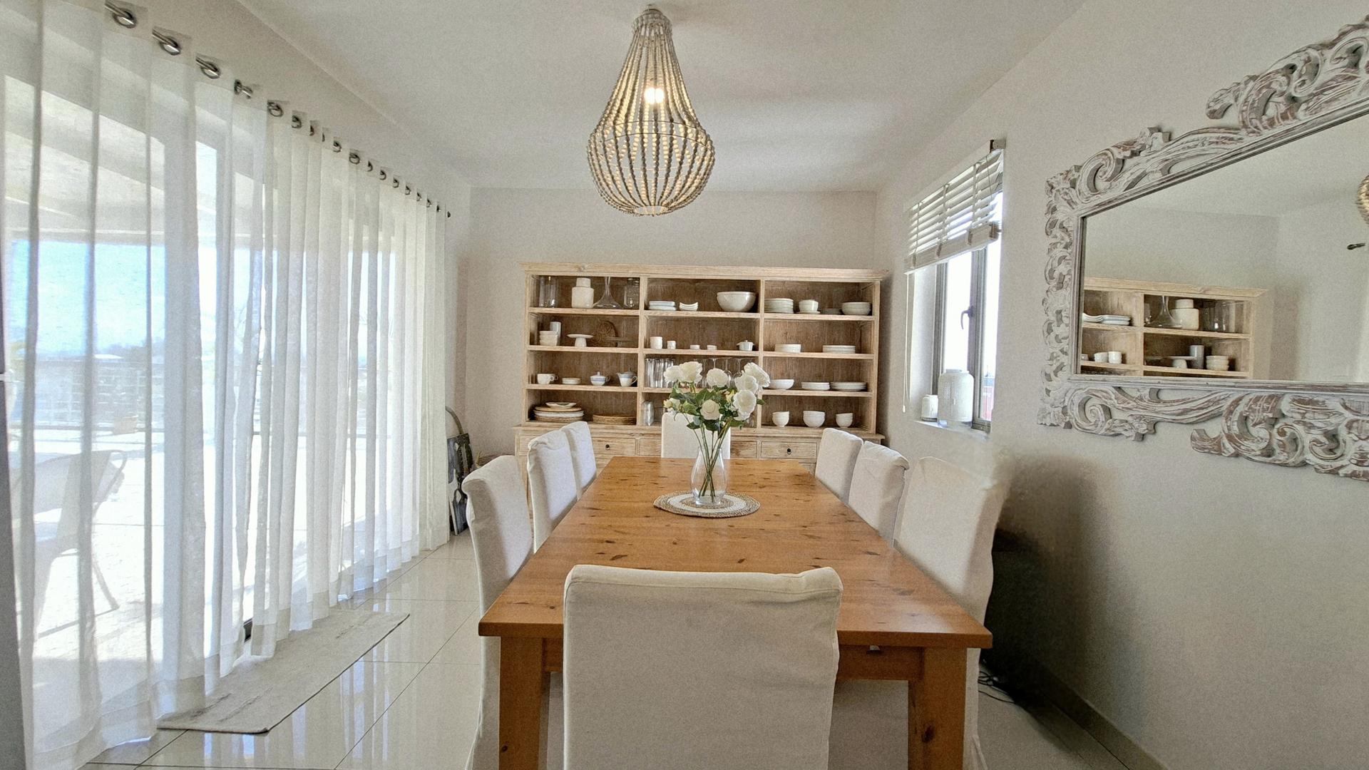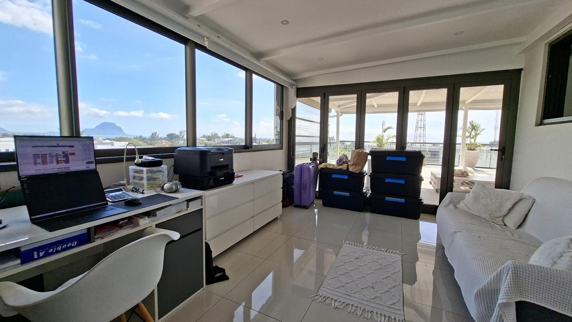 Experience refined coastal living in this beautifully appointed, 3-bedroom penthouse, ideally located within walking distance of shops and everyday conveniences. Bathed in natural light, the interior offers a bright, elegant atmosphere, enhanced by soft, neutral tones and a harmonious open-plan layout.The living space is designed for comfort and ease, featuring an American-style kitchen with quality appliances and a generous lounge area that creates a warm, inviting heart of the home. A dedicated dining area complements the ensemble, opening naturally onto the vast veranda. This outdoor space, perfectly arranged for relaxation and entertaining, enjoys sweeping views of the sea and the mountain.Find also the master suite with an en-suite bathroom, creating a calm and private retreat. A separate laundry room adds convenience, while an additional study space completes the practical layout.The penthouse is equipped with solar photovoltaic panels, air conditioning in all bedrooms, and electric water heaters, ensuring year-round comfort.Set within a secure gated residence, the property benefits from an electric entrance gate, a lift, a backup generator, 2 private parking spaces and a common swimming pool.Contact us for a visit.