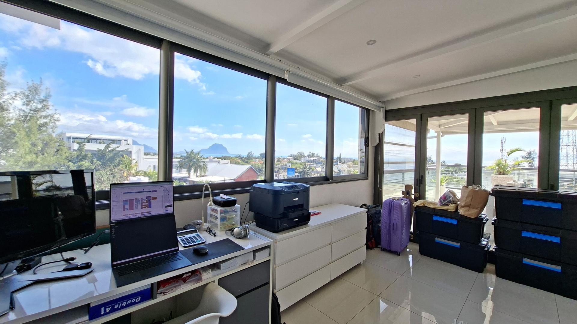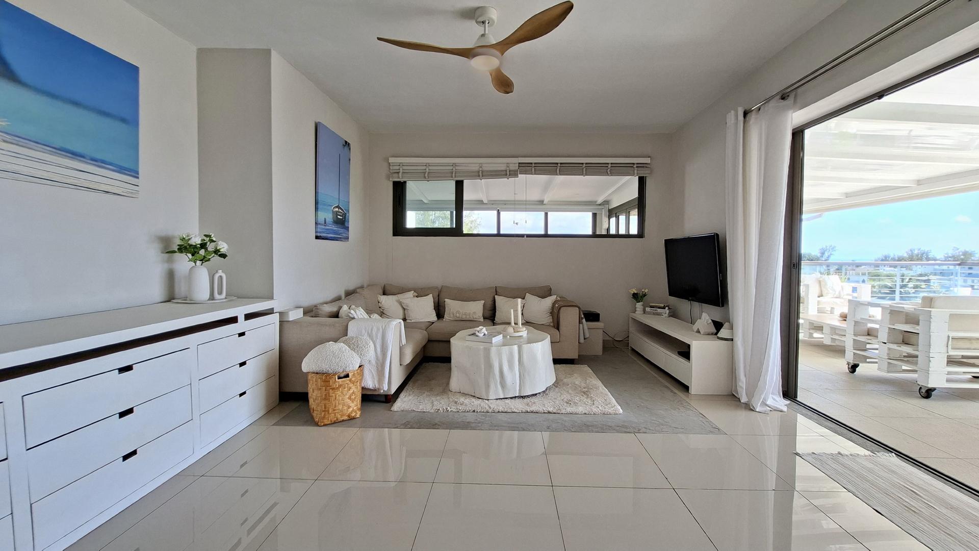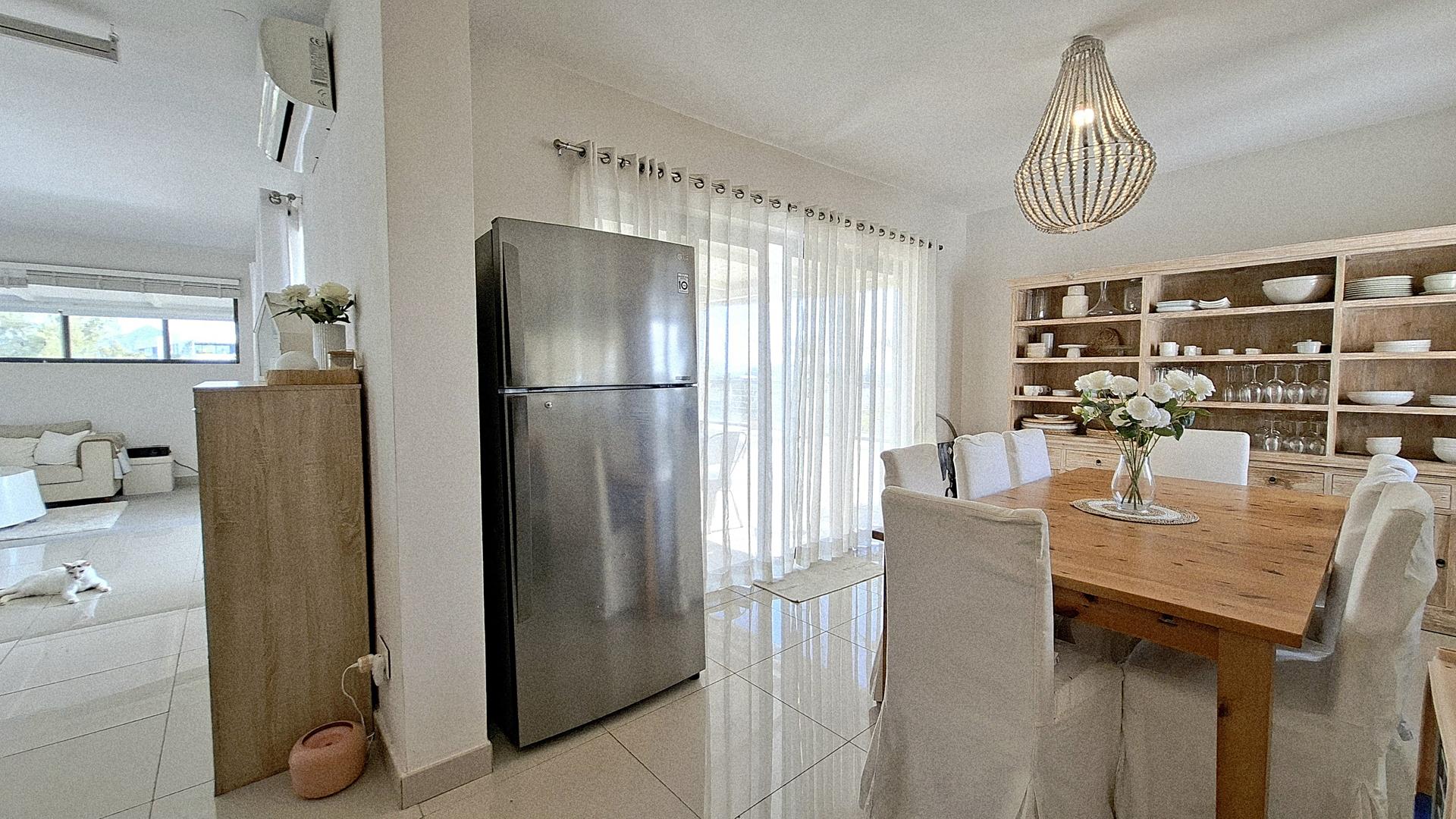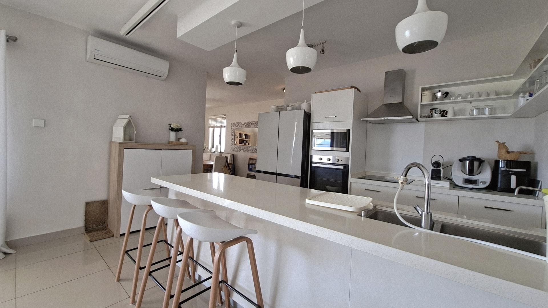 Experience refined coastal living in this beautifully appointed, 3-bedroom penthouse, ideally located within walking distance of shops and everyday conveniences. Bathed in natural light, the interior offers a bright, elegant atmosphere, enhanced by soft, neutral tones and a harmonious open-plan layout.The living space is designed for comfort and ease, featuring an American-style kitchen with quality appliances and a generous lounge area that creates a warm, inviting heart of the home. A dedicated dining area complements the ensemble, opening naturally onto the vast veranda. This outdoor space, perfectly arranged for relaxation and entertaining, enjoys sweeping views of the sea and the mountain.Find also the master suite with an en-suite bathroom, creating a calm and private retreat. A separate laundry room adds convenience, while an additional study space completes the practical layout.The penthouse is equipped with solar photovoltaic panels, air conditioning in all bedrooms, and electric water heaters, ensuring year-round comfort.Set within a secure gated residence, the property benefits from an electric entrance gate, a lift, a backup generator, 2 private parking spaces and a common swimming pool.Contact us for a visit.