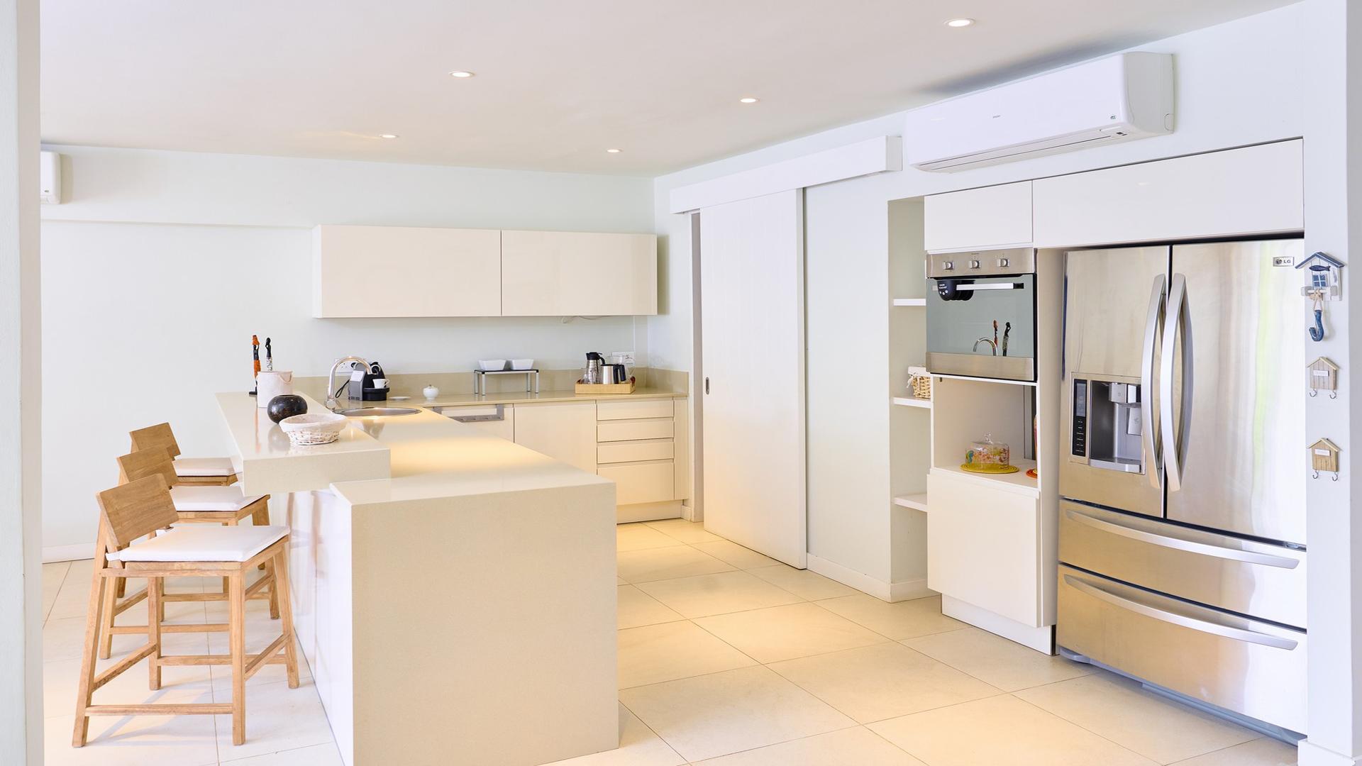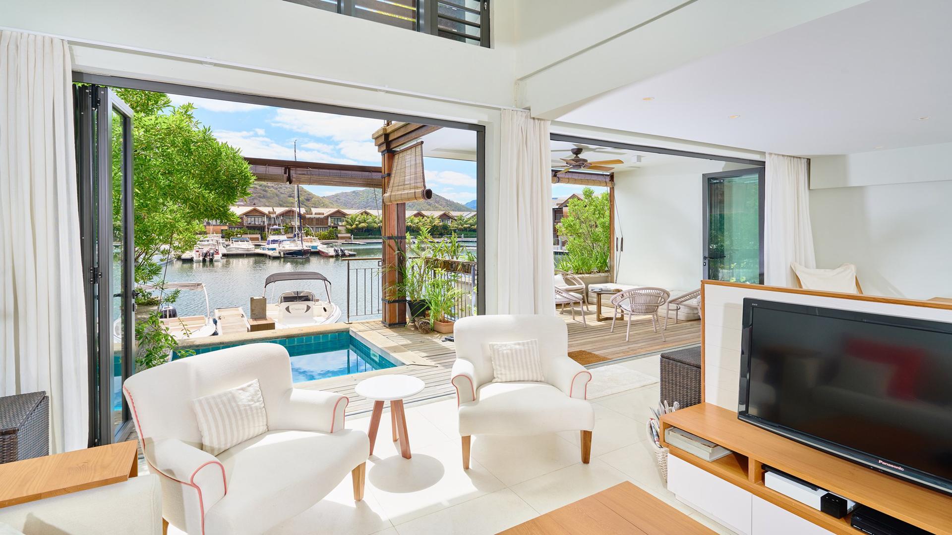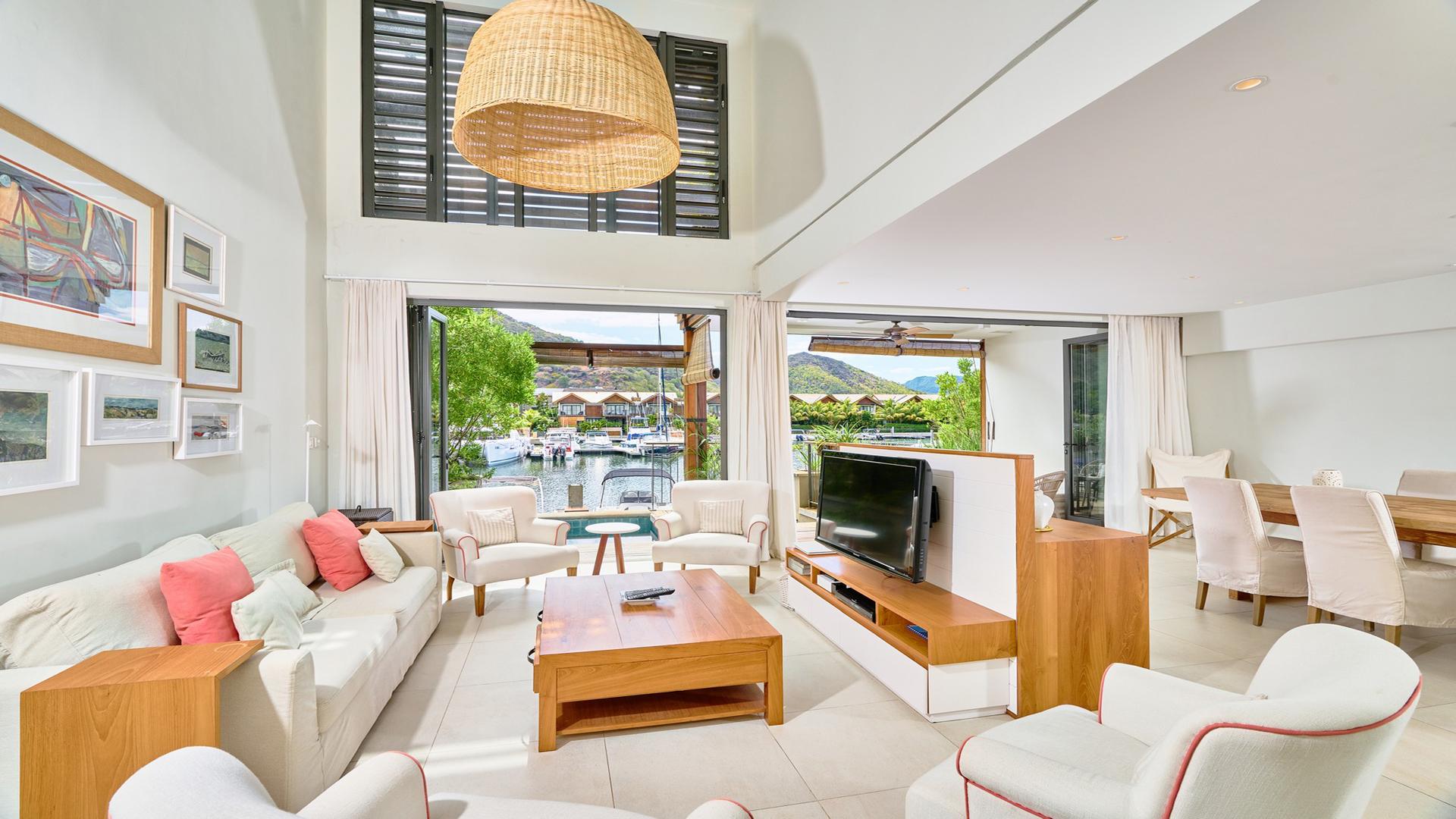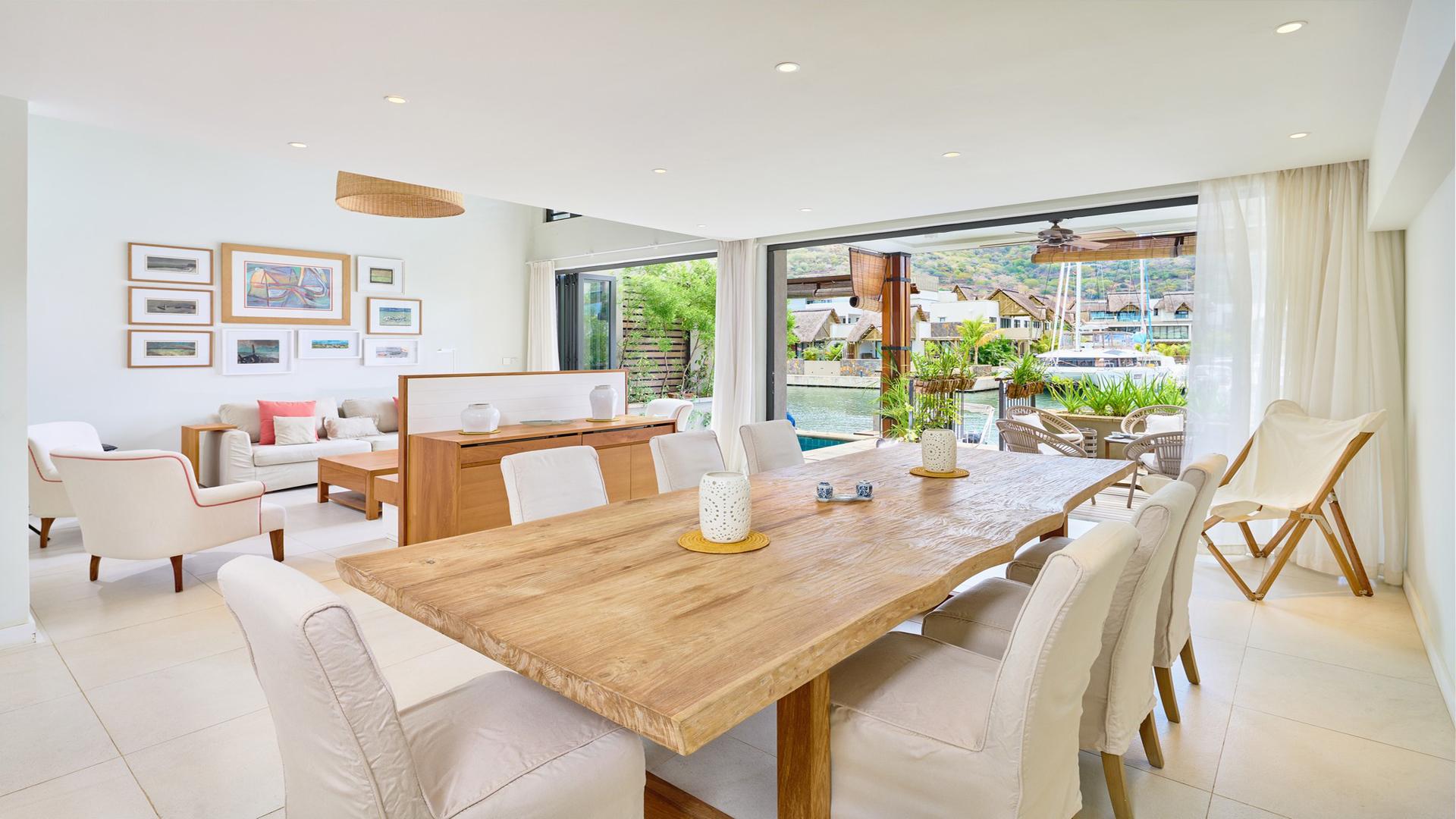 Premier location on the Marina’s main basin – this 3 bed 4 bath Duplex, complete with private berth for a vessel of up to 40ft is paradise for any sea loving adventurer! The free spirit of this home, along with the boho chic decorum, will make your life feel like a holiday 365 days a year. A quick escape onto your boat and out into the wonderfully large lagoon for your daily dose of sun and salt water.. back for a leisurely lunch and a dip in the plunge pool on the terrace, before heading upstairs for a nap in any of the 3 air-conditioned bedrooms. All bedrooms are en-suite, 2 have Marina views and the third a mountain view. The Master has a private sun terrace. All bedrooms are located on the first floor. On the ground-floor you will find, an open, modern kitchen and living/dining area with high ceilings creating tremendous sense of space. Glass sliding doors onto a wooden deck and the waterfront. There is also a scullery/laundry area and back of house patio for storing paddles and drying of clothes. The guest WV conveniently also has an extra (4th) shower for the many days when there’s a flow of friends and family..