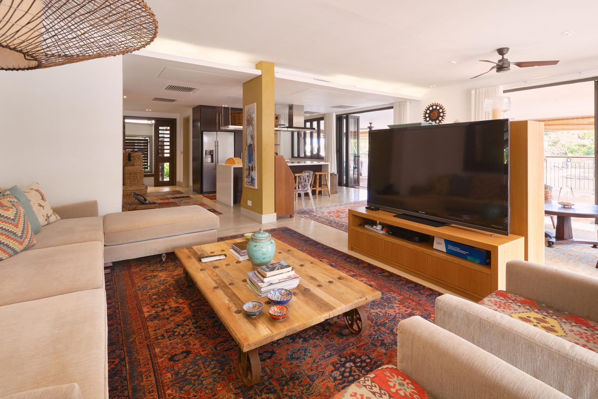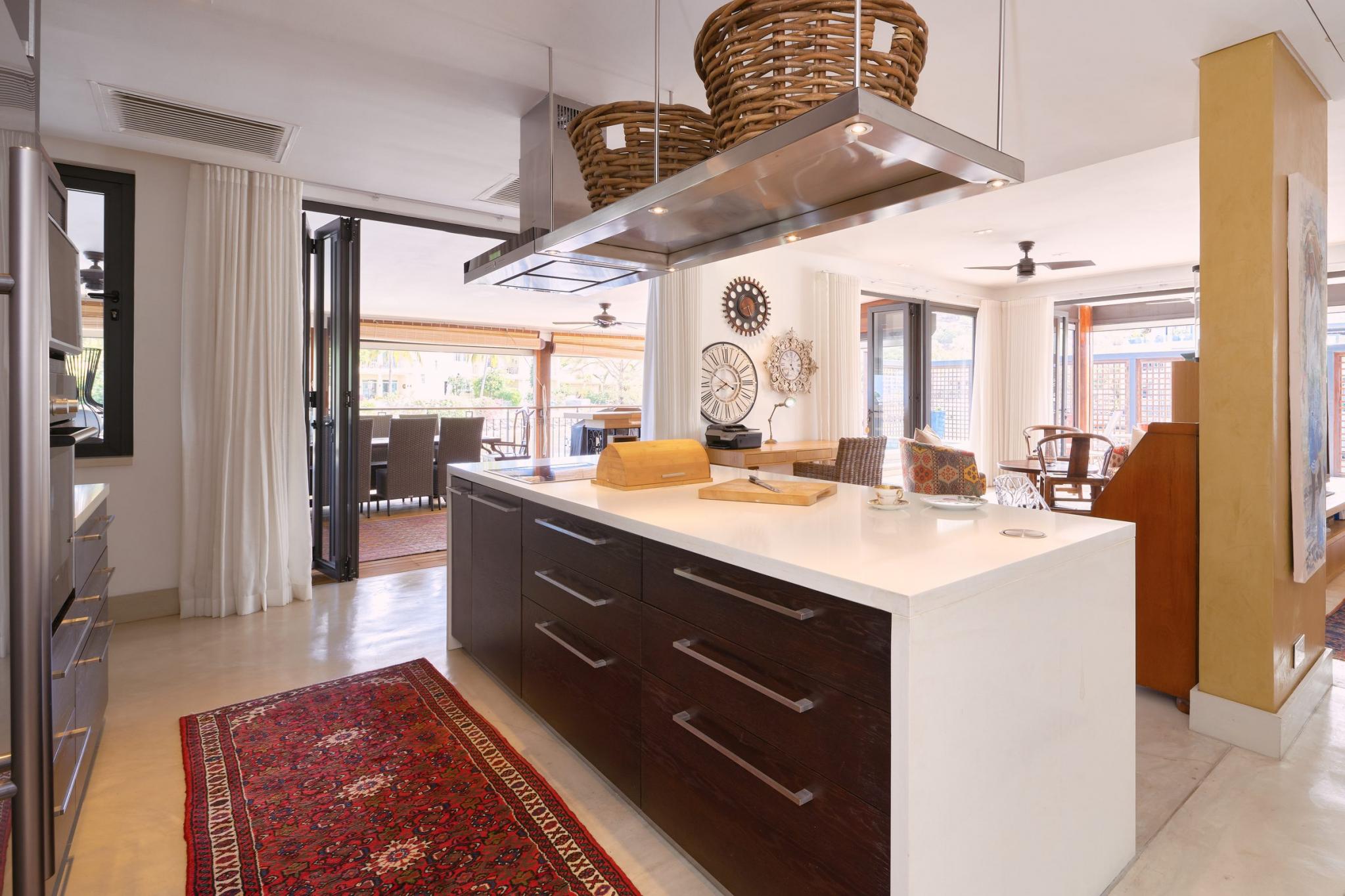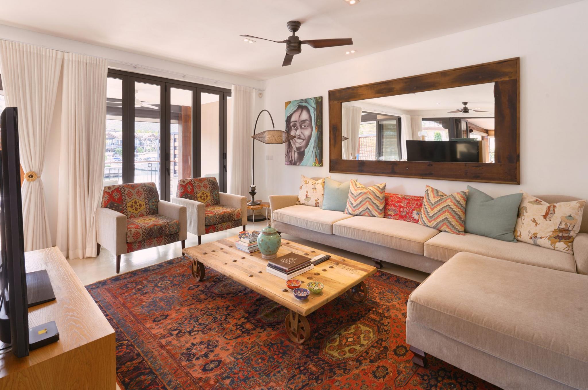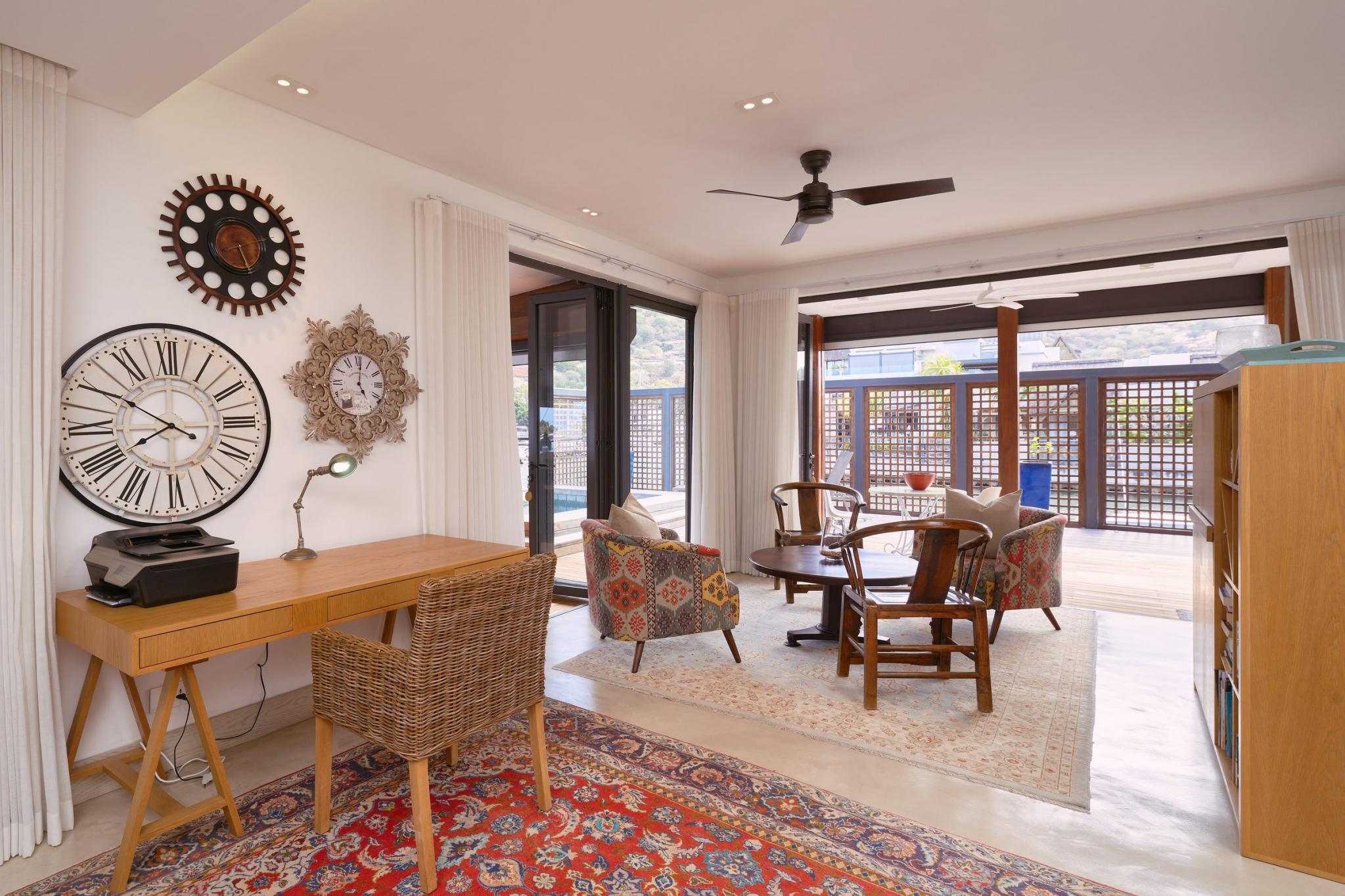 “It is life, I think, to watch the water. A man can learn so many things.” ― Nicholas Sparks In exclusivity with Mauritius Sotheby’s International Realty, welcome to the most desirable location on the Marina! A true oasis on the water’s edge, the ultimate vantage point to observe everyday nautical life in and around La Balise Marina, this 3-bedroom duplex is a pure gem. With outlooks to the West, North, and East, the owners of this dreamy duplex have optimized the unique position with a bespoke, wooden deck, that runs the full length of the property and connects back around to the front.It’s the perfect setup for entertaining family and friends on the water, and the most effortless, boat-in/boat-out experience one is likely to find. There are 3 en-suite bedrooms, all on the first floor, 2 of which have fabulous views. The extended master suite offers extra closet space, a large en-suite, and a private, sun-filled, balcony for some quiet time.Downstairs you will find an open plan living room and fully equipped kitchen, a guest WC and store room neatly fitted under the stairs, a scullery and covered outdoor sink & bins area – perfect for drying laundry out of sight. ‘La piece de résistance’ has to be the generous L-shaped deck complete with a private pool, bar, and plenty of place for a large dining table and outdoor seating area. An entertainer’s paradise, this USP really opens up the home, letting in natural light and creating such wonderful space, while still working remarkably well as a lock up and go. Clear, electric roll-down blinds efficiently shield the deck should undesirable weather roll in, while maintaining the unobstructed views of the bay and La Tourelle Mountain.Built circa 2015 and lovingly maintained by a single owner who has continuously improved on practical aspects and aesthetics which lend such endless charm to this home. Perfect for all lovers of the sea who are looking for a permanent or semi-permanent residence on the warm and calm waters of Black River. Other enviable features include 3 private berths of 12 to 15M in length, a large boat garage/hanger, and a covered parking bay. If not needed, the pontoons and boat hangers are always in high demand and can be rented out, thereby comfortably covering monthly upkeep and syndic levies.La Balise Marina is the only residential marina in Mauritius, services and amenities include 24hr security, a 25M lap pool, tennis court, clubhouse and pool, and boutique owners fitness room. Boat charter operators and management service providers are close by as well as office space and a popular restaurant just across the water.