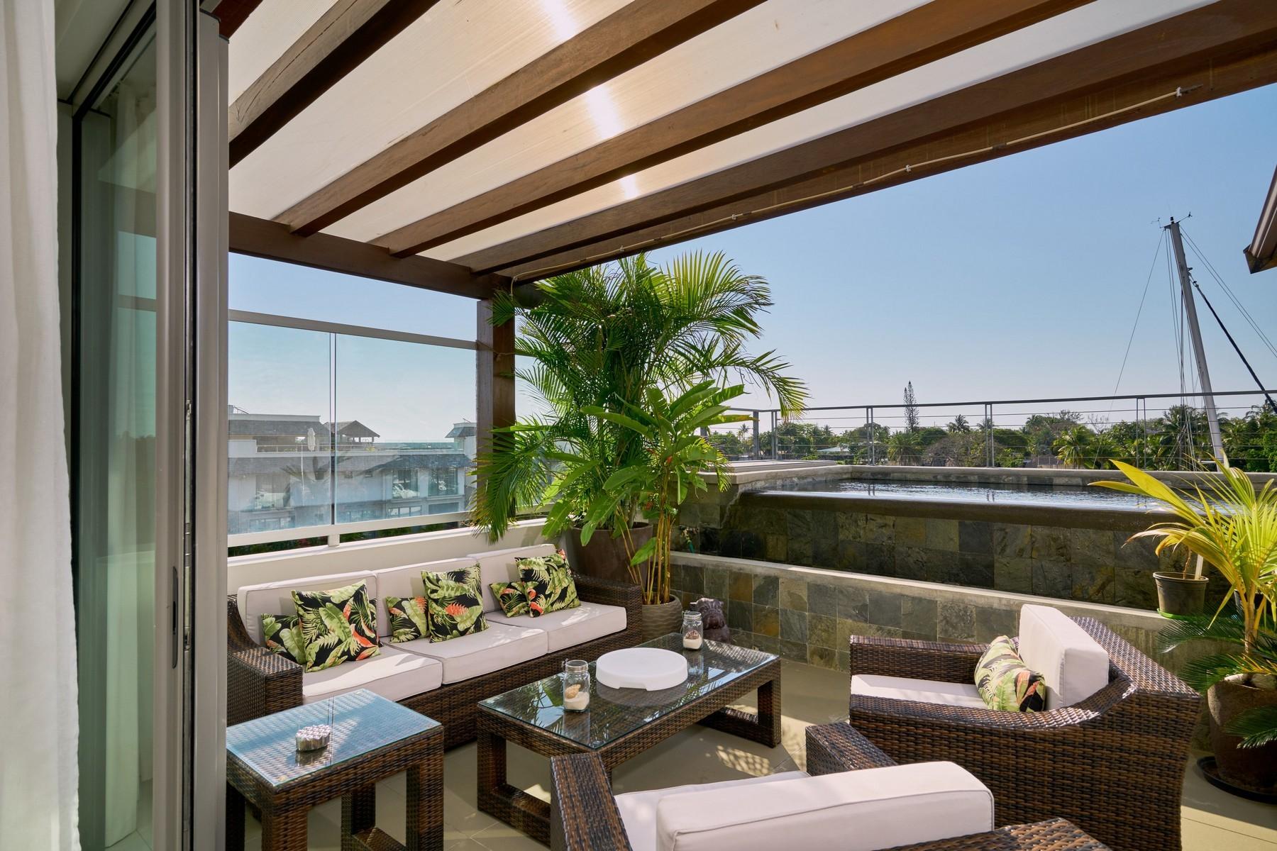 An exceptional waterfront property that combines the lock-up-and-go-convenience of an apartment with the relaxed outdoor lifestyle of a house. Situated in an upmarket marina development, this beautifully maintained and fully furnished penthouse has three luxurious en-suite bedrooms, all with aircon. The bright and airy double-volume open-plan living area has floor-to-ceiling sliding doors that open out to a nice terrace where a raised plunge pool is the perfect spot to sip cocktails and watch the sun set. A separate balcony offers additional outdoor space. The fully-equipped modern kitchen allows for seamless entertainment on lazy summer days. Residents enjoy a vibrant yet tranquil island lifestyle with access to an array of world-class facilities, including a restaurant, a communal infinity pool, a spa and gym and an artificial beach. Controlled access and 24-hour security offers peace of mind. The surrounding Black River area offers a host of leisure activities, from nature reserves with hiking and biking trails to beaches and a full range of nautical activities. Foreign ownership, access to Mauritian residence permit and a favourable fiscal climate 3% guaranteed return for 2 years