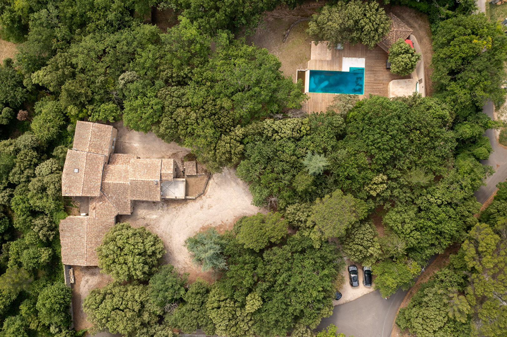 Ideally positioned, the villa enjoys exceptional light throughout the day. Its large picture windows offer uninterrupted views of the woods, while the terraces invite nature into the house.