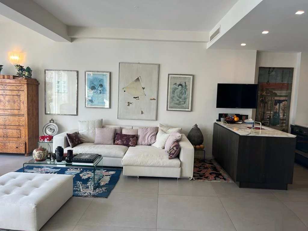 The apartment is composed of a spacious living room with fitted kitchen, two bedrooms and two shower rooms.