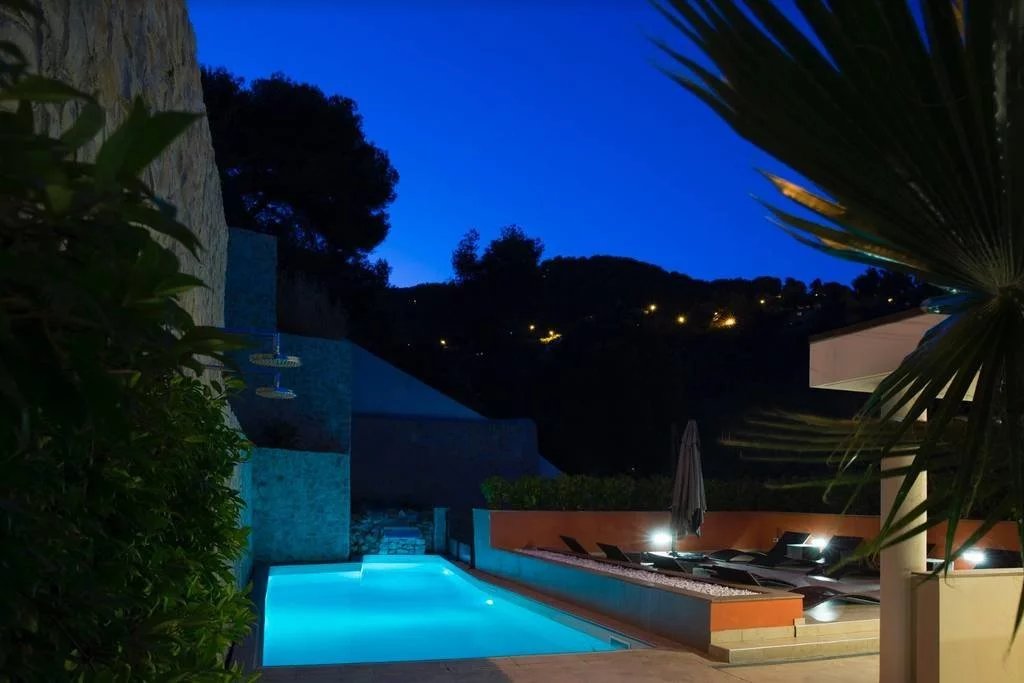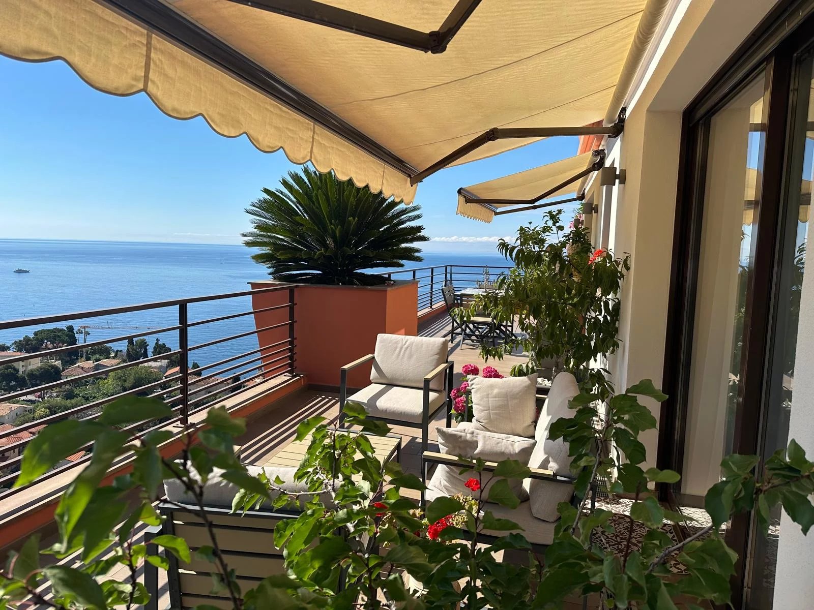 Overlooking the beaches of the Golfe Bleu, just a few minutes from Monaco, in a recent luxury residence with swimming pool, spacious top-floor 2-bedroom south facing apartment with panoramic sea-view terraces.