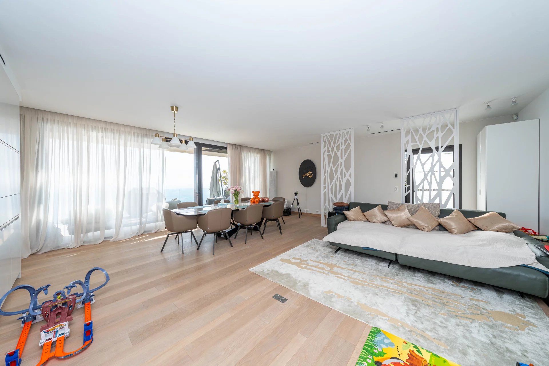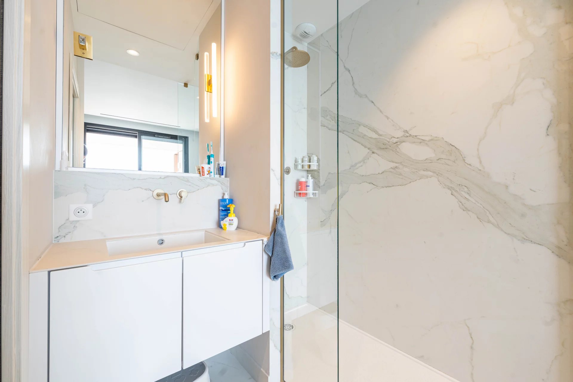 Covering an area of around 150 m2, it comprises an elegant entrance hall, a bright living and dining room, a fully equipped kitchen, a bedroom with bathroom and toilet, a master bedroom with bathroom and dressing room, a guest toilet, a laundry room and a superb terrace.