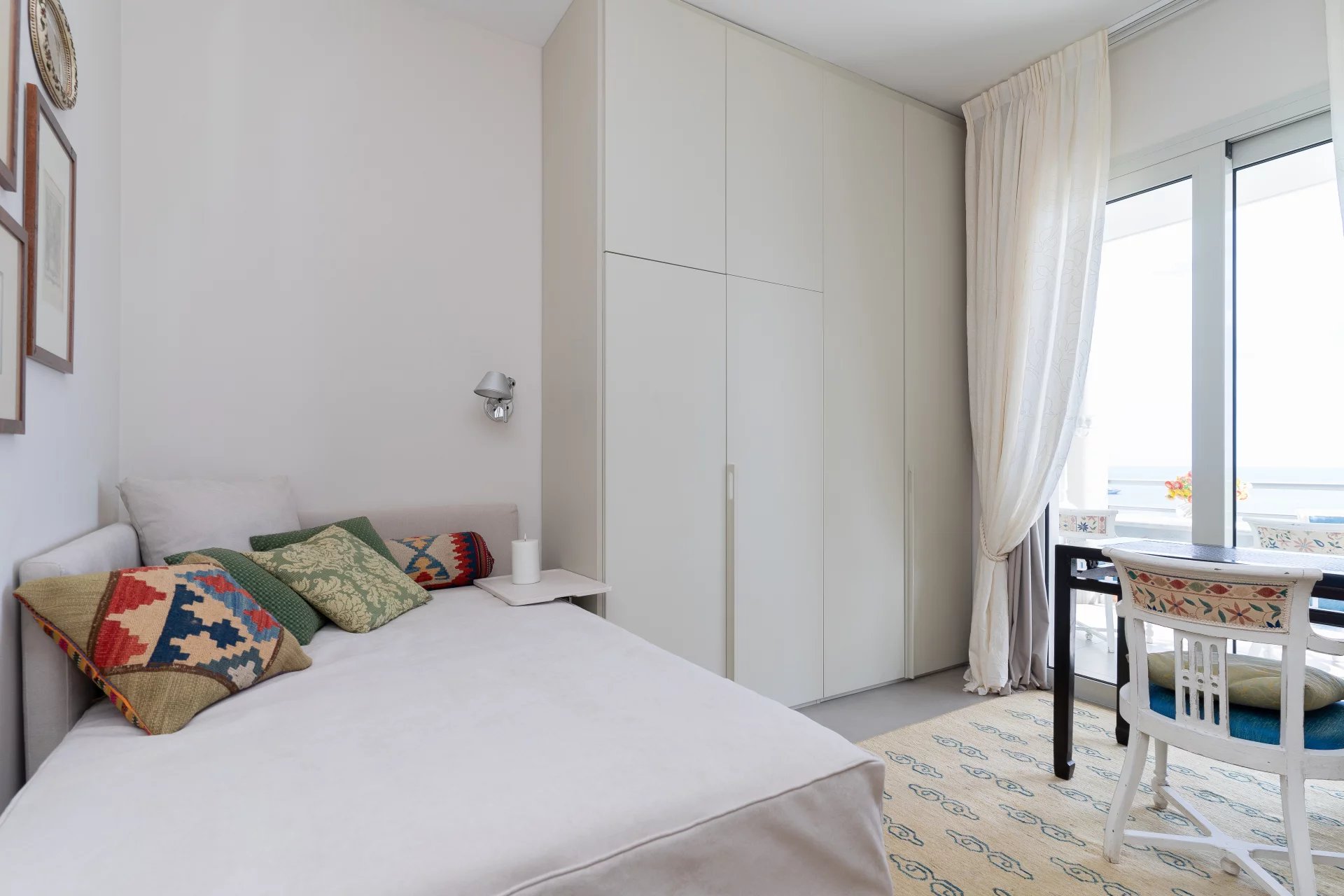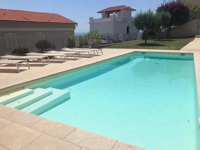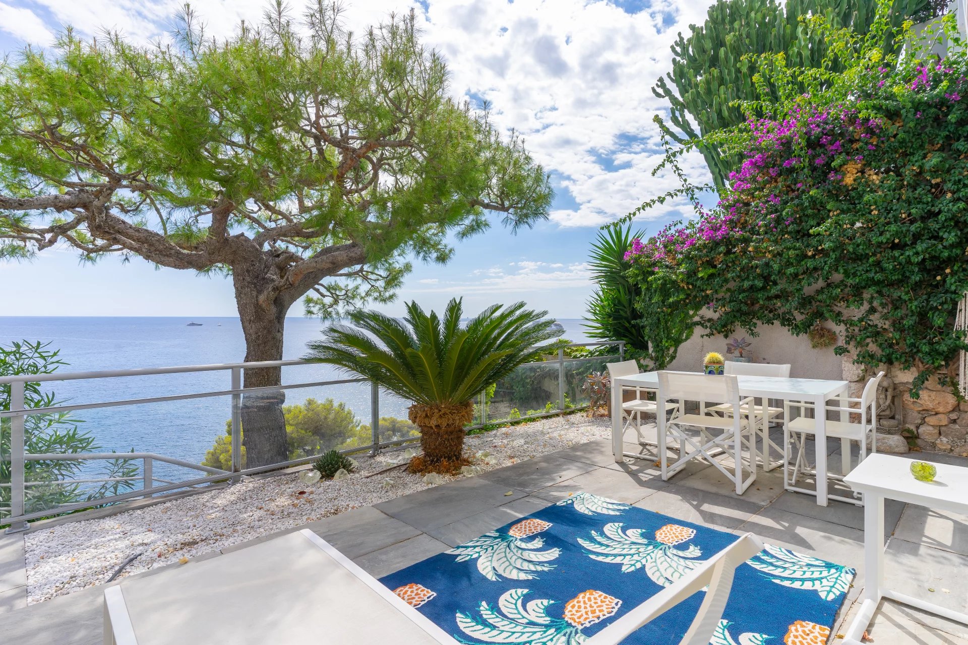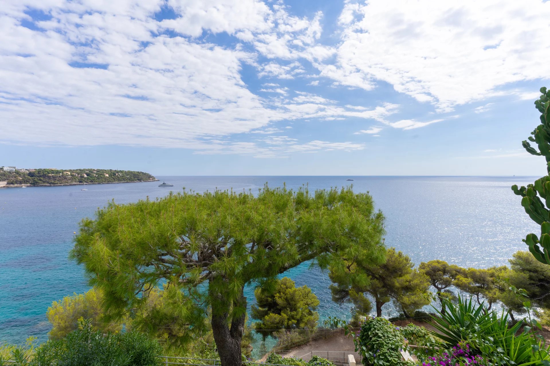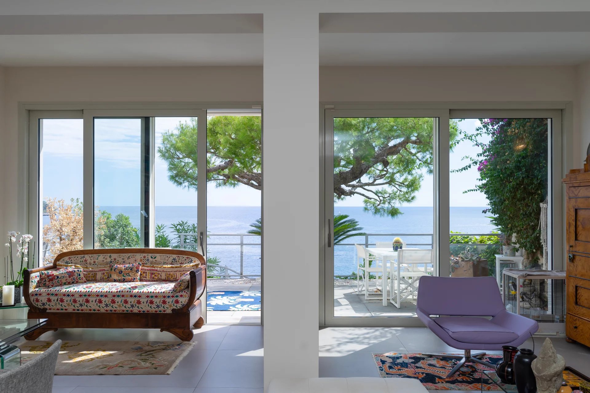With breathtaking sea views, the apartment comprises an entrance hall, a large living room with bay windows opening onto a terrace and garden, a kitchenette, a laundry room, two bedrooms with en-suite shower rooms.