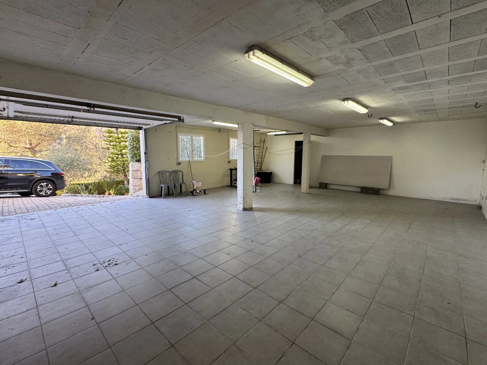 High-end features include underfloor heating, air conditioning, a spacious 100 m2 garage, and additional parking spaces.