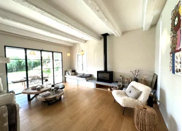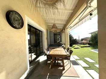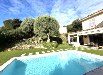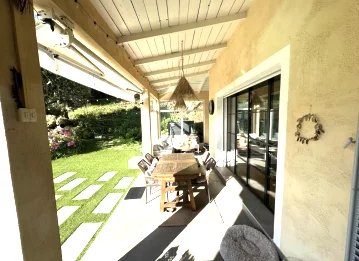 Set on a 1,750 m2 plot planted with olive and fruit trees, the villa enjoys full southern exposure and spacious access at the end of a cul-de-sac, guaranteeing absolute peace and privacy.