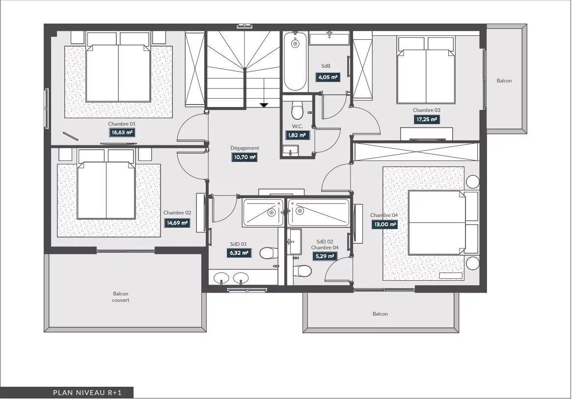 On the first floor: 4 bedrooms, 3 bathrooms, terraces.