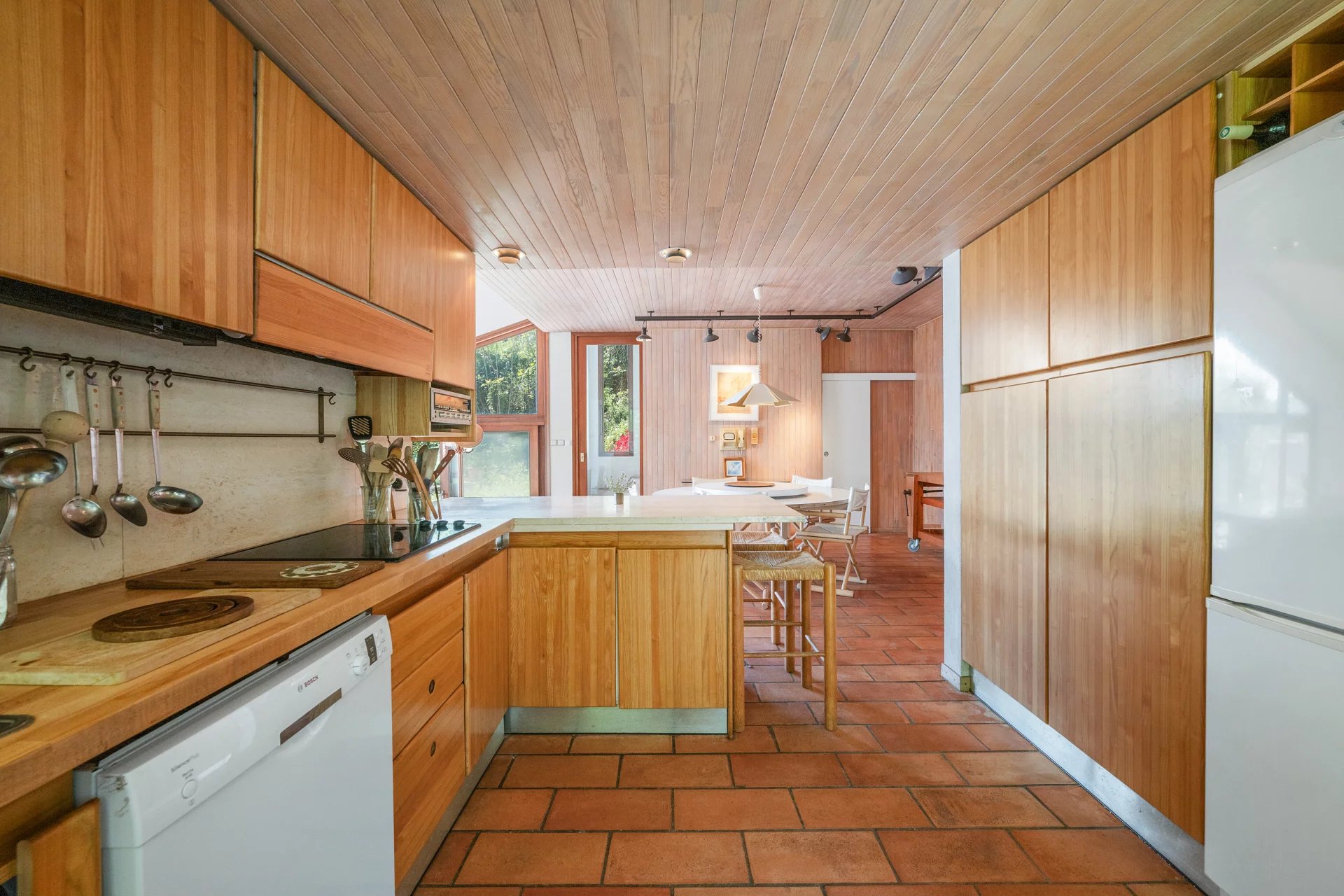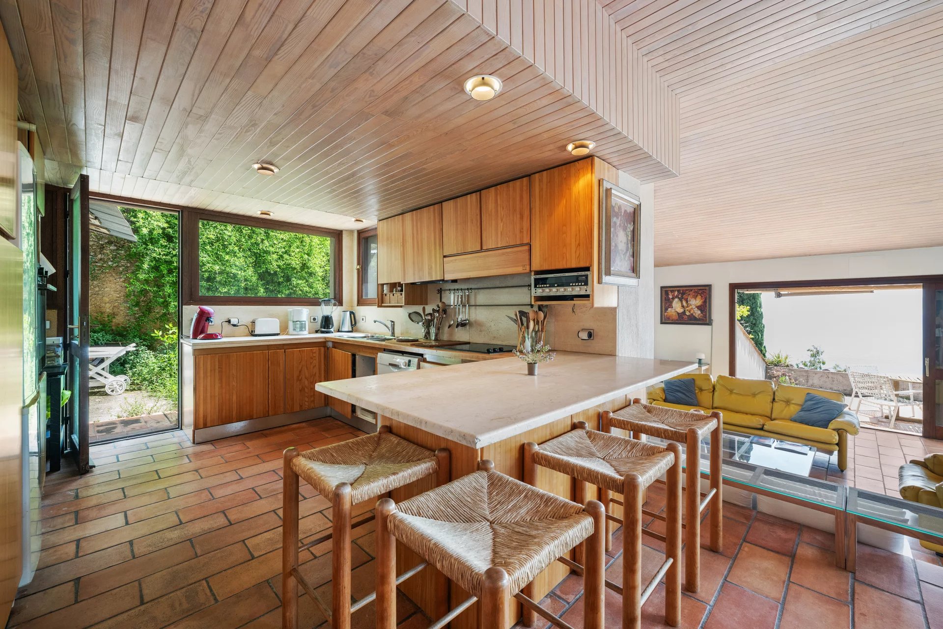 Nestled in a terraced garden of 1662 m2, this architect-designed villa features approximately 300 m2 of living space spread across 4 levels, arranged in terraces along the natural slope of the land.
