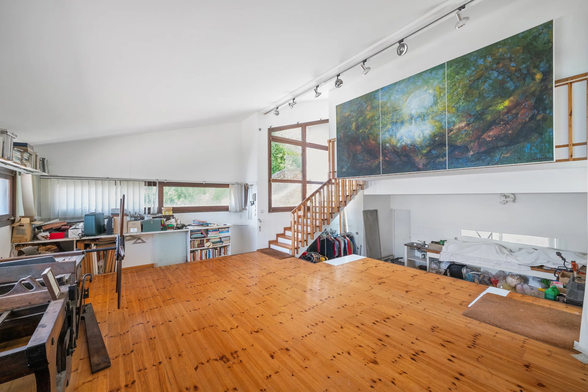 The house comprises a bright living room opening onto a terrace, with an open kitchen and dining area. It also offers 4 ensuite bedrooms, including 2 with mezzanines, a spacious studio, and parking for 3 cars.