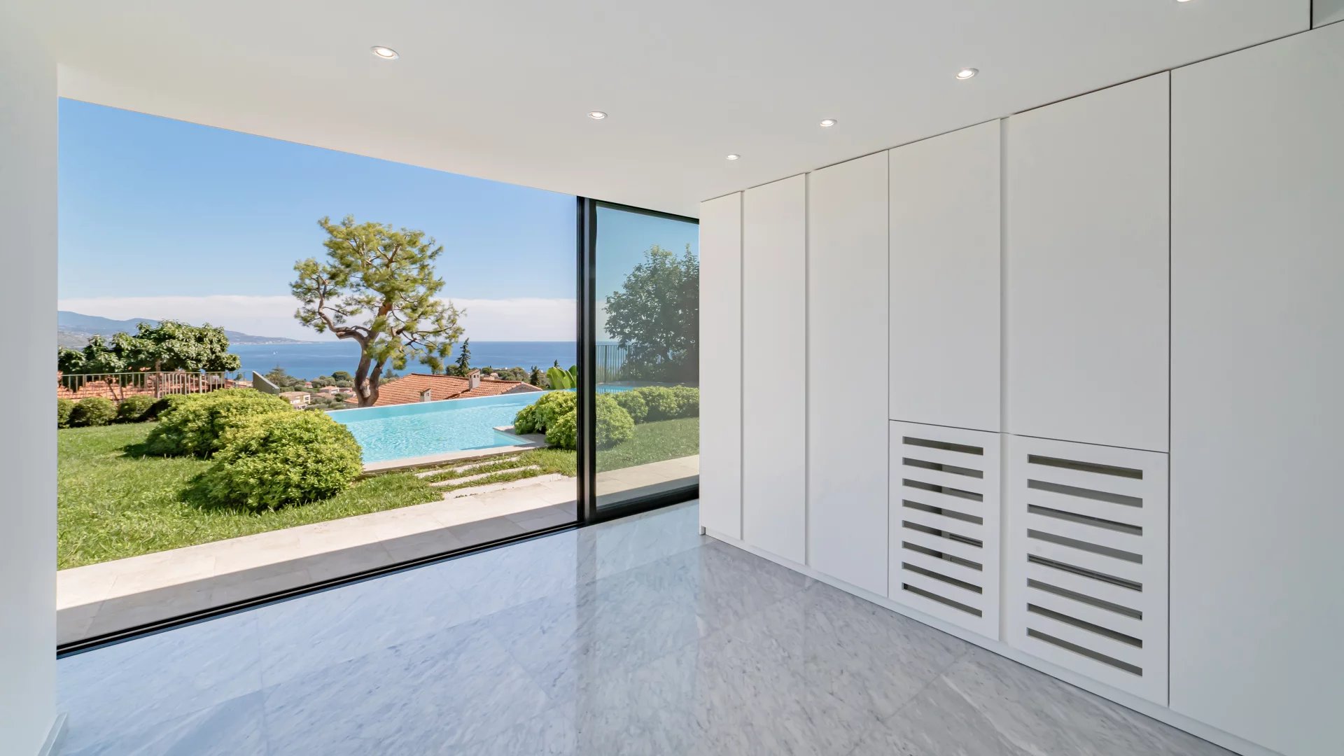 Roquebrune Cap Martin located in a quiet residential area, a contemporary villa of approx. 280m2 with panoramic sea view.