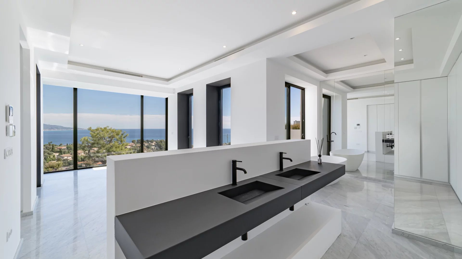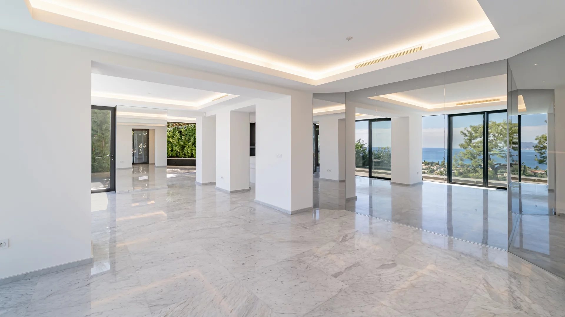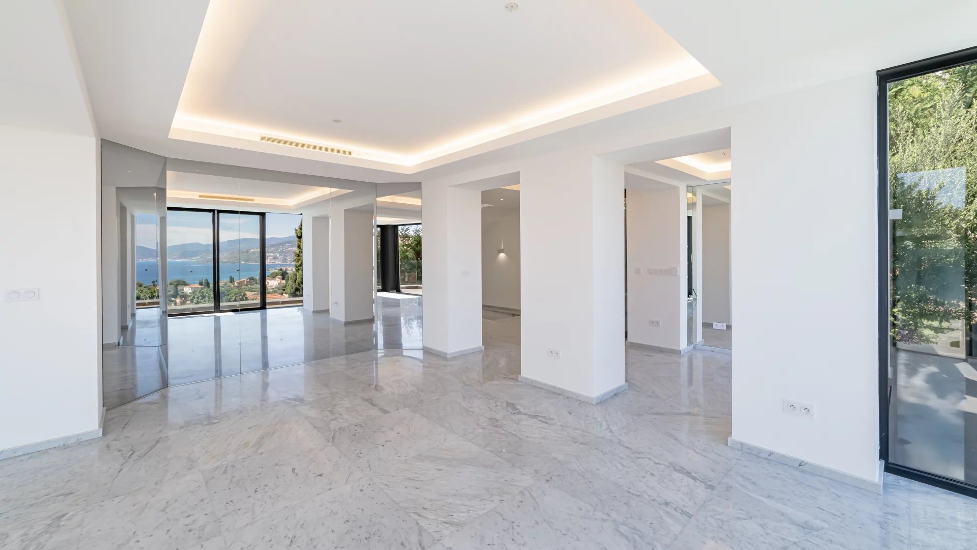 All rooms are bright and airy, with large bay windows to take full advantage of the exceptional view. The villa has an elevator from the garage to the main level, where a magnificent olive tree is planted.