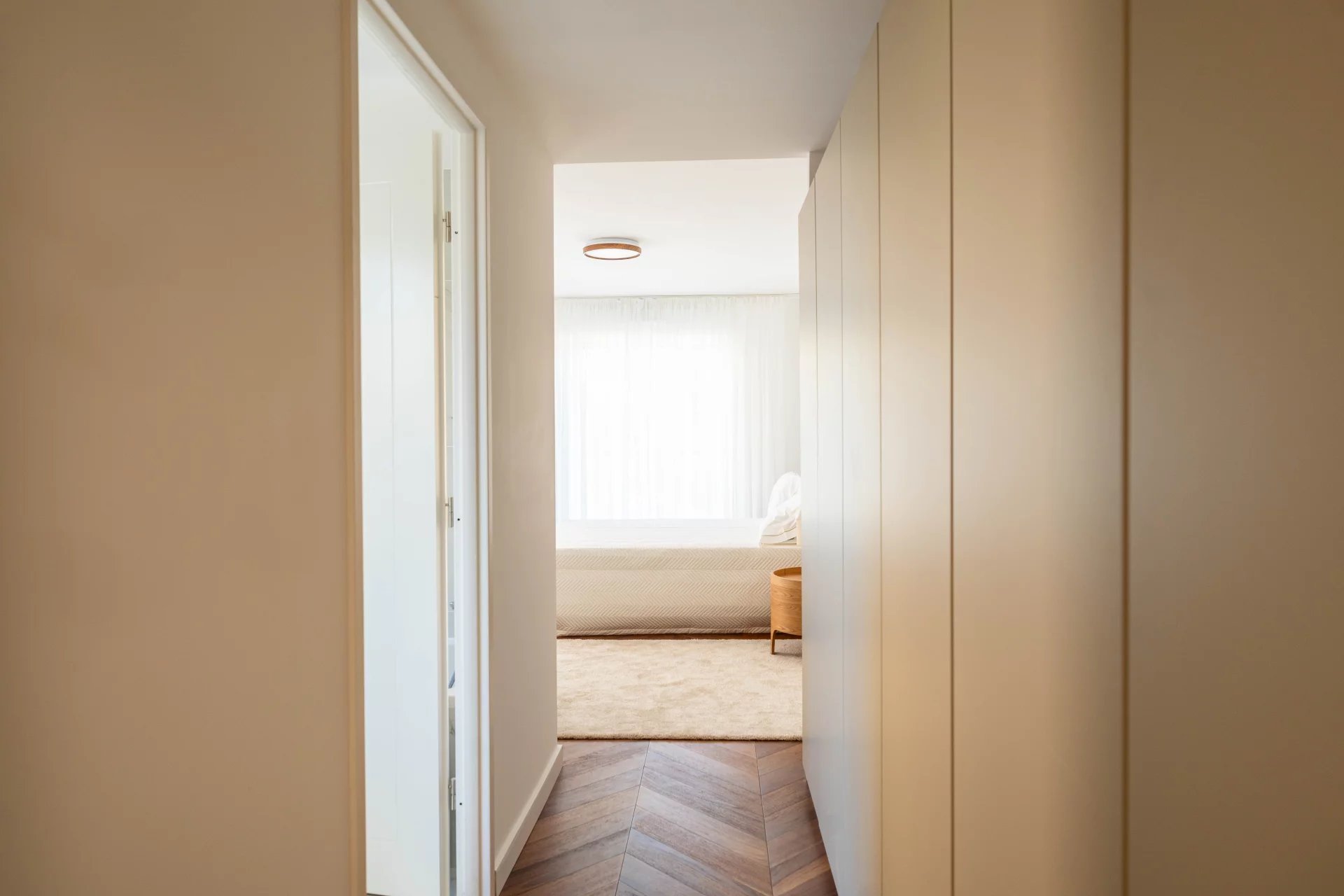Upstairs, a hallway leads to two additional bedrooms, a bathroom with toilet, a dressing room and a shower room with toilet. A private internal staircase connects the two levels, ensuring smooth, harmonious circulation.