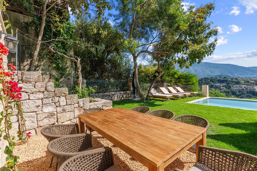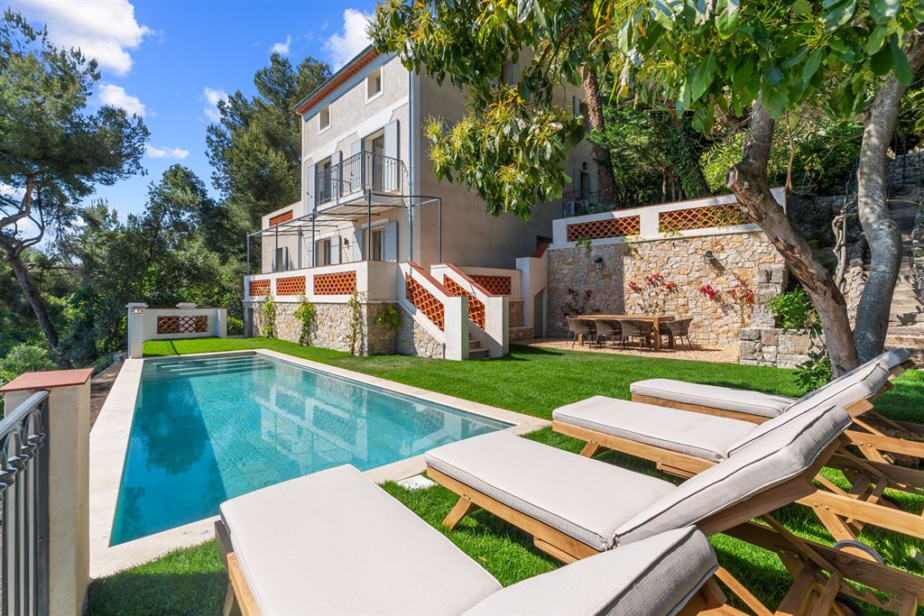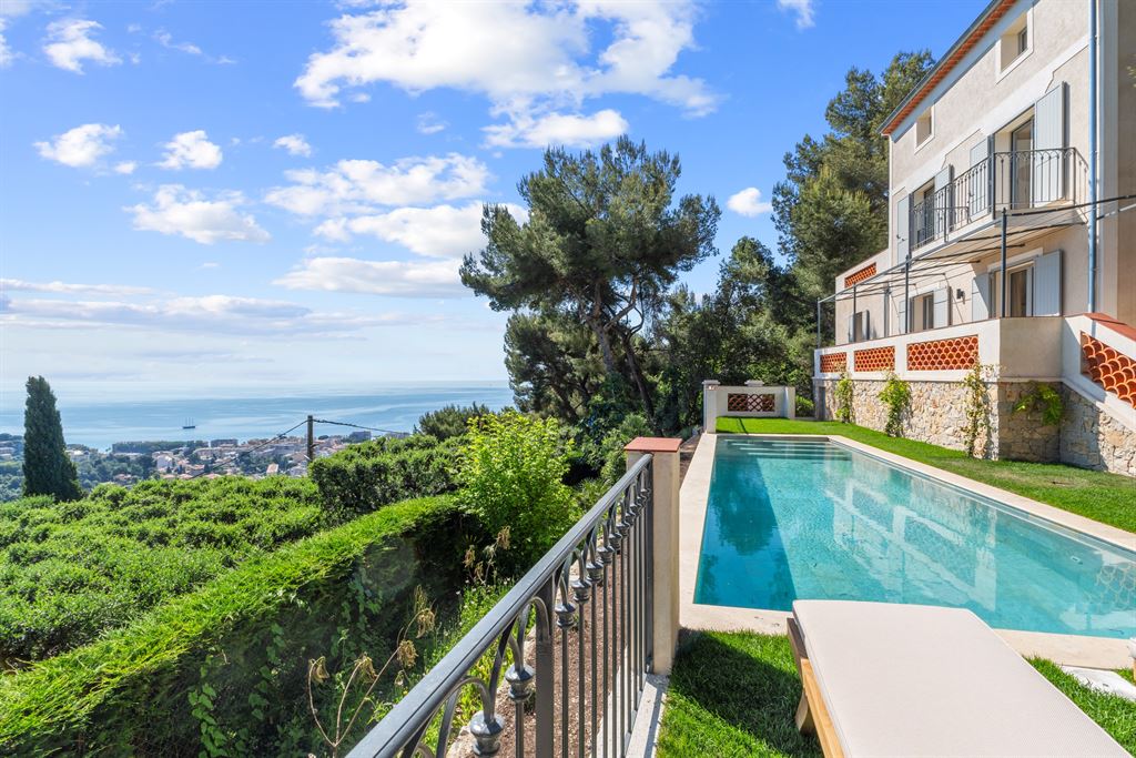 Located in a quiet and green setting between sea and hills, this 306 m2 villa is ideally positioned just 5 minutes from the Roquebrune-Cap-Martin train station and 10 minutes from Monaco’s beaches.