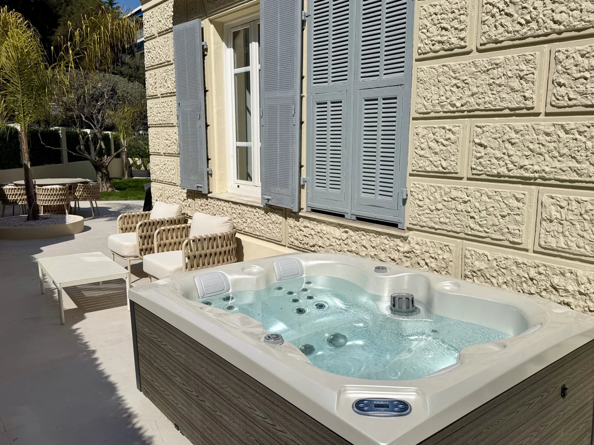 Set within an easily maintained, fully fenced garden, the outdoor space includes a relaxing jacuzzi area, ideal for enjoying the Riviera lifestyle in complete privacy.