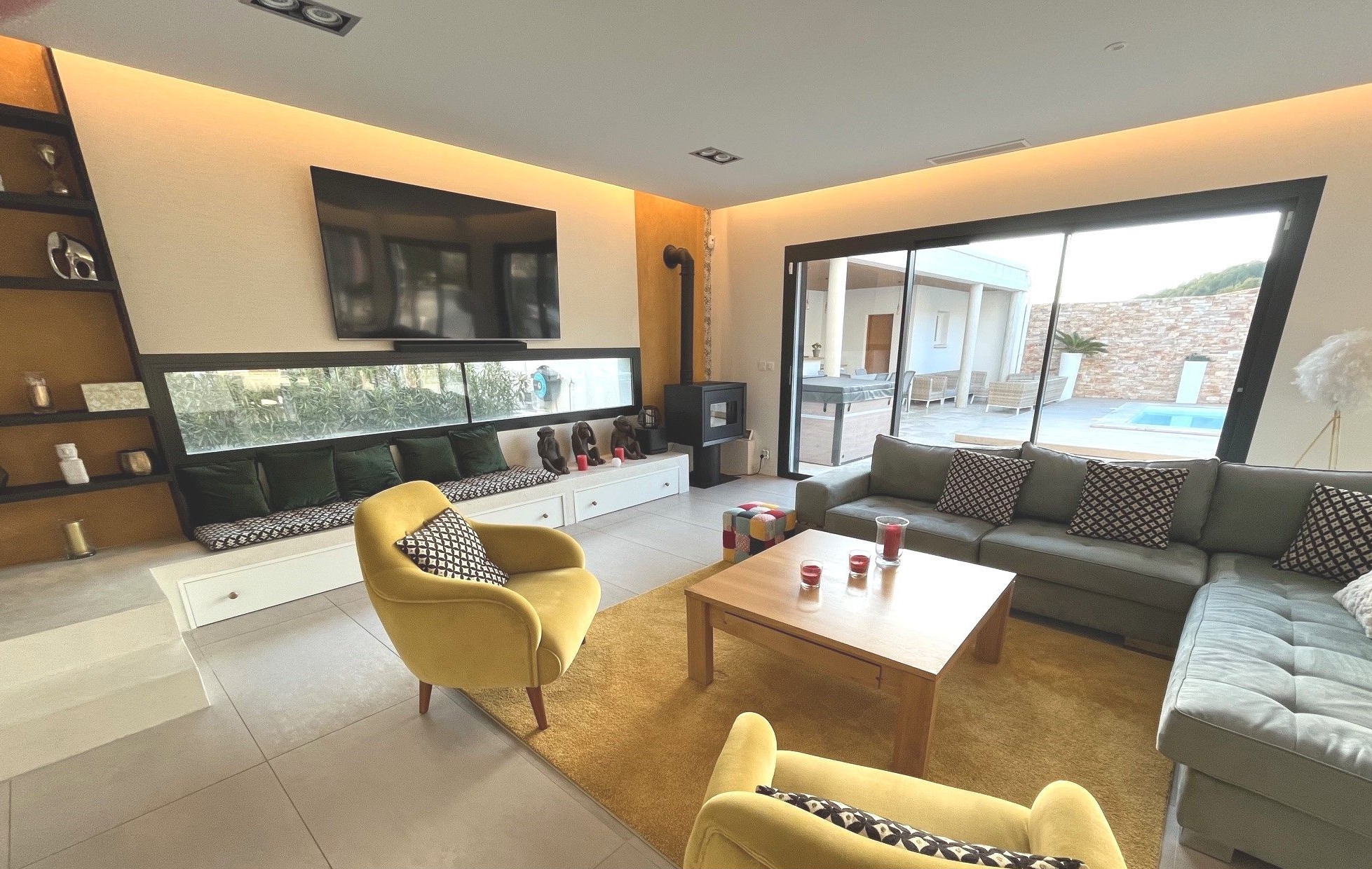 Modern house built in 2016 to a very high standard, whose accommodation currently has been laid out into a main house of 170m2 with living room / kitchen of 80m2, 4 bedrooms including two suites, and a separate 50m2 apartment with its lovely terrace.