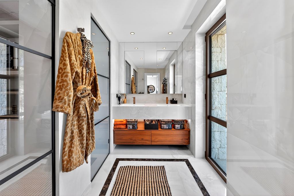 The villa features four bedrooms, including a well-proportioned master suite, complemented by several bathrooms and shower rooms, ensuring comfort and privacy for family and guests alike.