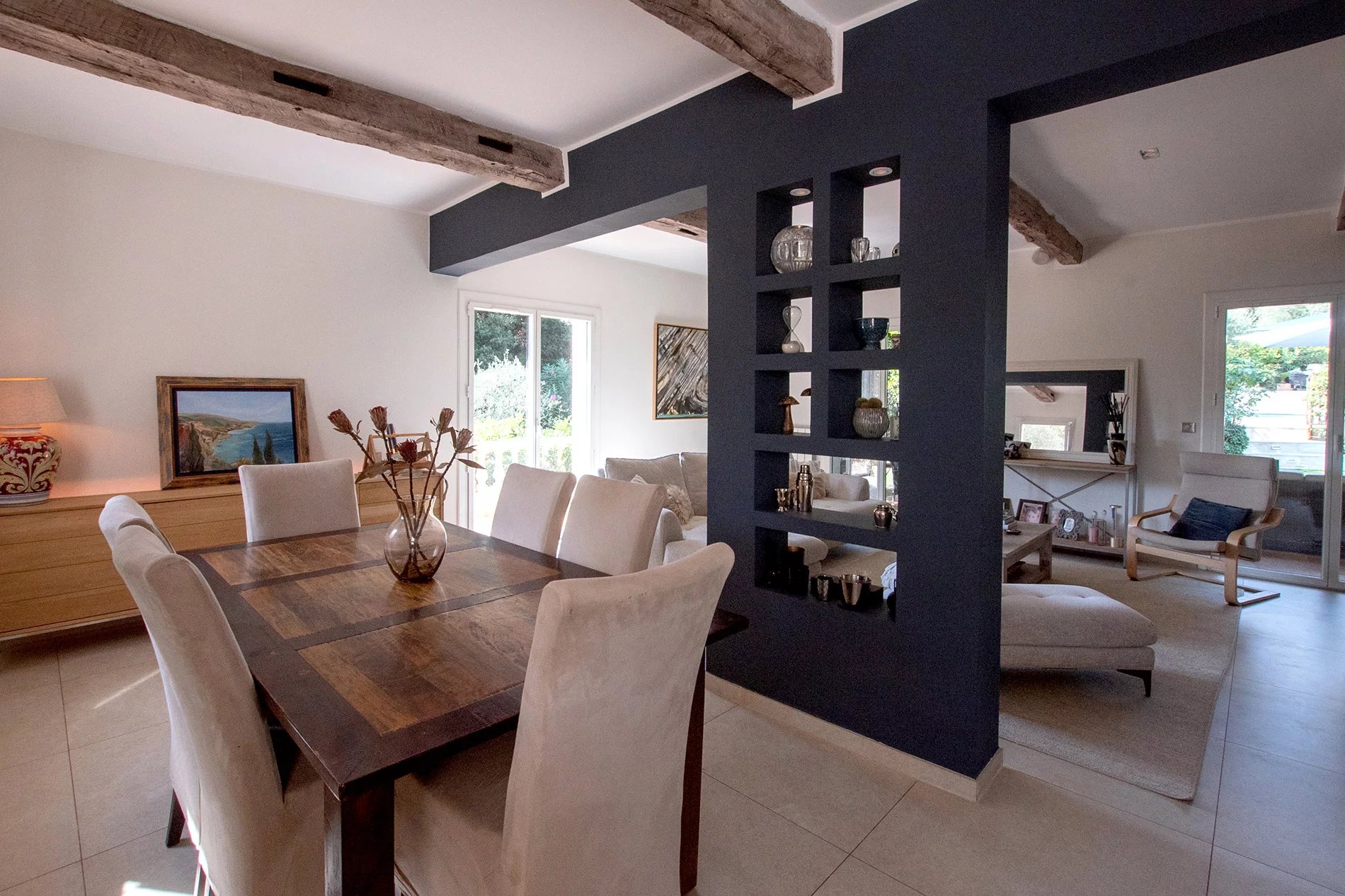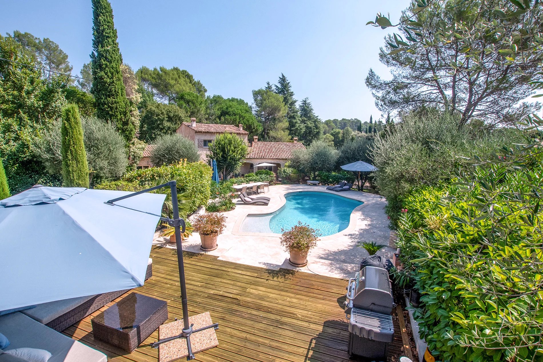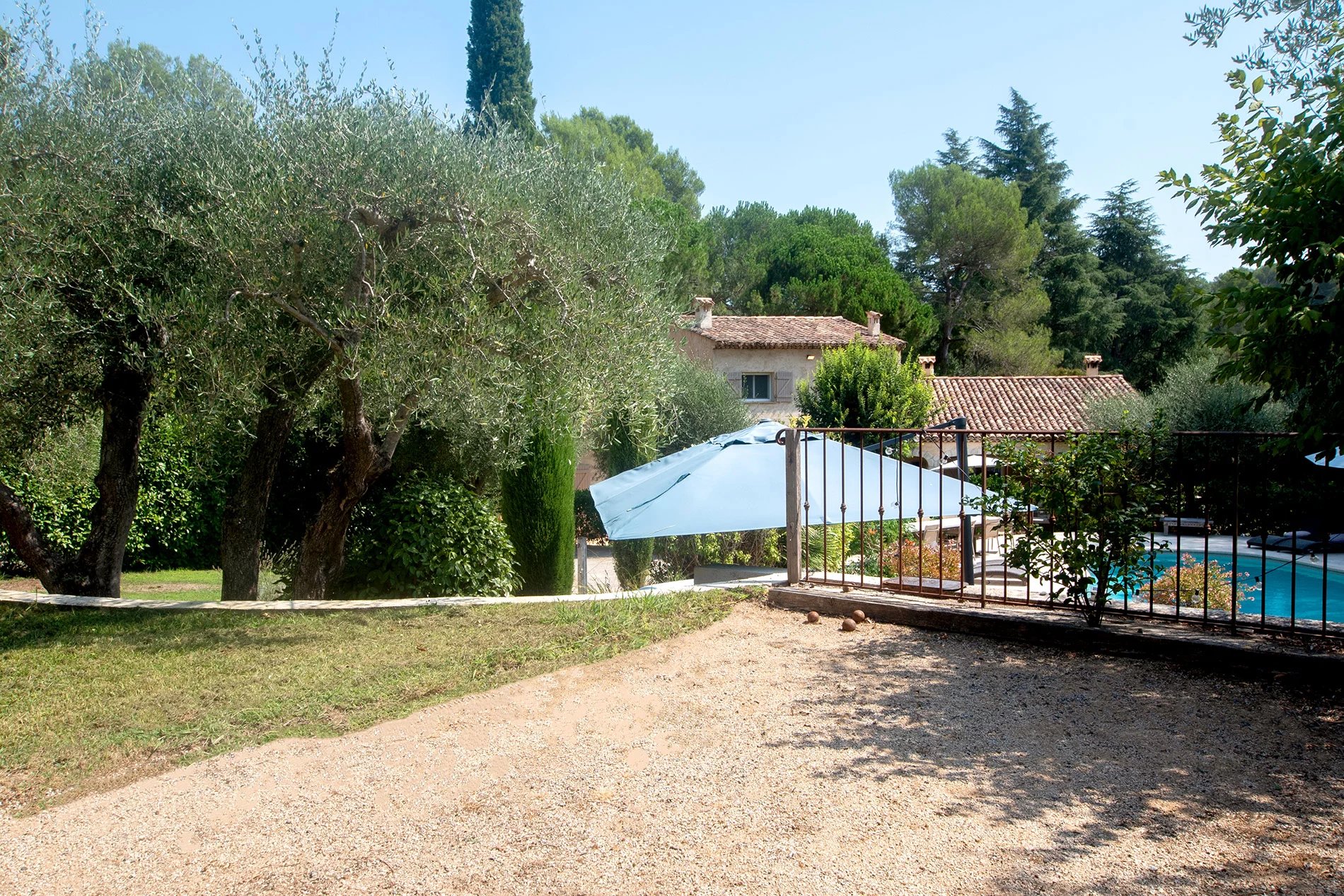 In the grounds you find a large, free-form swimming pool surrounded by an extensive terrace with dining, seating, and sunbathing areas. The grounds also include a boules court, a garage, and several mature olive trees, adding to the classic Provencal charm.