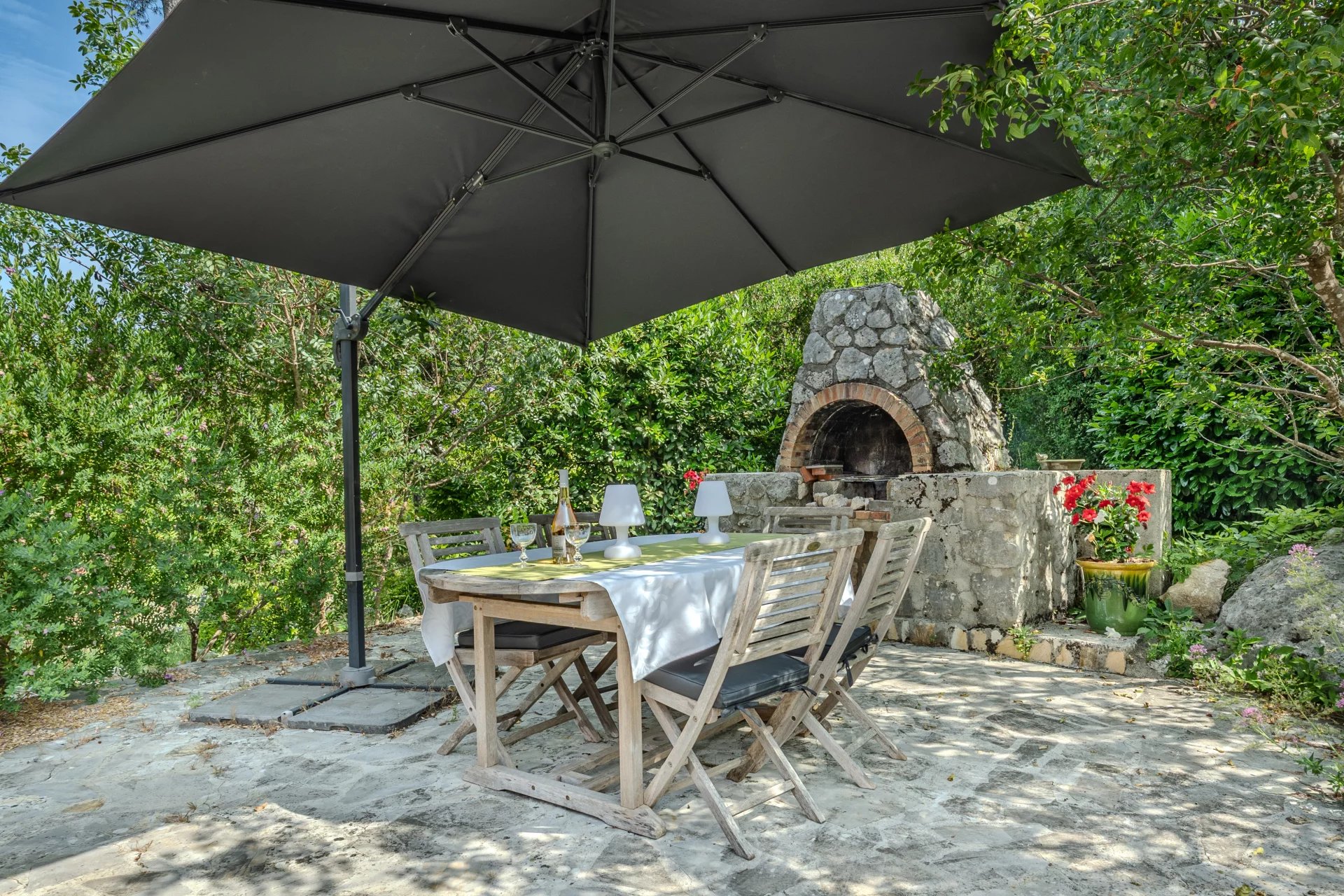 The outdoor area is truly private and designed for relaxation, with a heated swimming pool, an open pool house with summer kitchen, and a petanque court.