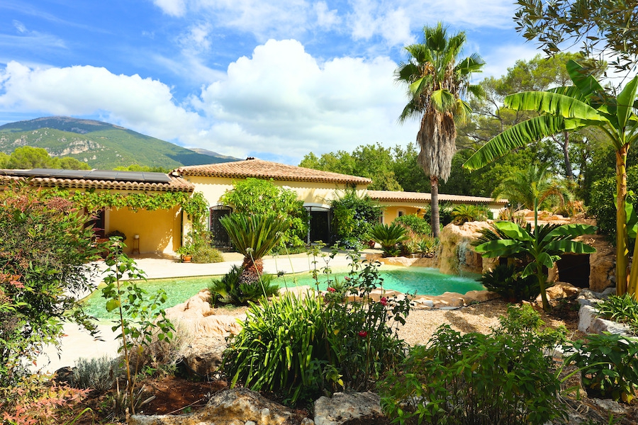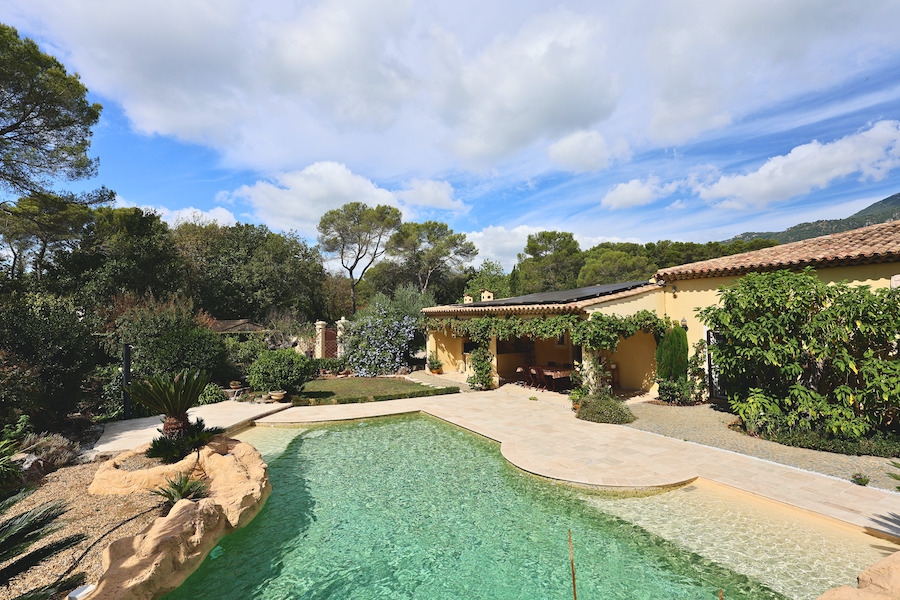 Outside, everything is designed for relaxation and conviviality: a naturally designed swimming pool with waterfall, pool house and summer kitchen, games areas, gym, office and recreation room.