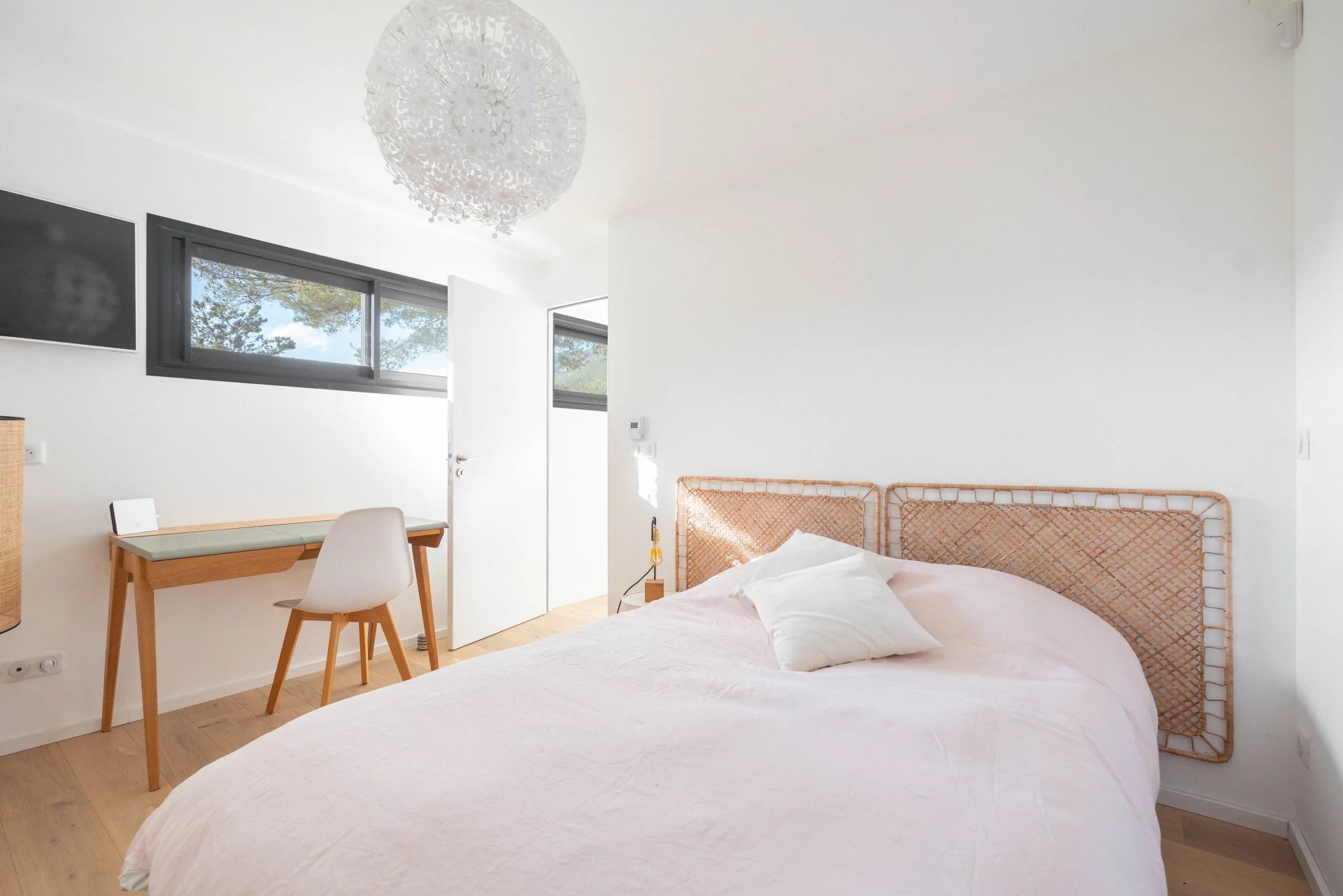 The Leitch kitchen, both stylish and functional, integrates perfectly into this open space designed for sharing and conviviality. High-quality finishes include wooden flooring, air-conditioning, and carefully selected materials throughout.