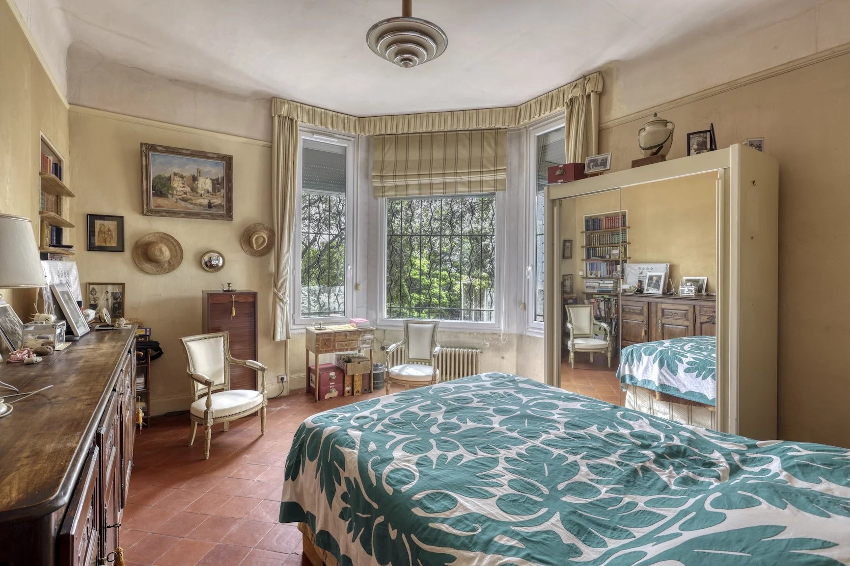The house, spanning approximately 170 m2, consists of a noble floor with double-height ceilings and a garden level. The bay-windowed living room facing the sea offers generous volumes and a deep view of the wooded park. On this floor, you will also find an independent kitchen and three bedrooms with their own bathrooms. The garden level includes two bedrooms, a laundry room, and a wine cellar.