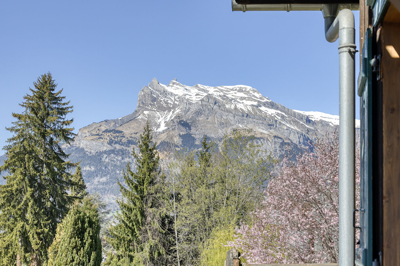 Located less than 5 minutes’ walk from the center, this recently renovated 50’s chalet offers around 150 sq-m of living space, making a total of 180 sq-m. It benefits from an exceptional living environment, combining peace and quiet with immediate proximity to shops and amenities. The chalet has 4 bedrooms, two shower rooms with toilets and a large lounge-games area. The interior has been recently renovated using quality materials, creating a warm, modern atmosphere; The bright living room opens onto a vast 100 m² terrace, perfect for enjoying the fine weather and uninterrupted views. Built on a large plot of land, this property also offers a mazot of around 25 sq-m, currently rented out. This property offers many possibilities, whether for year-round living or as a second home, with the advantage of a prime location close to the center.