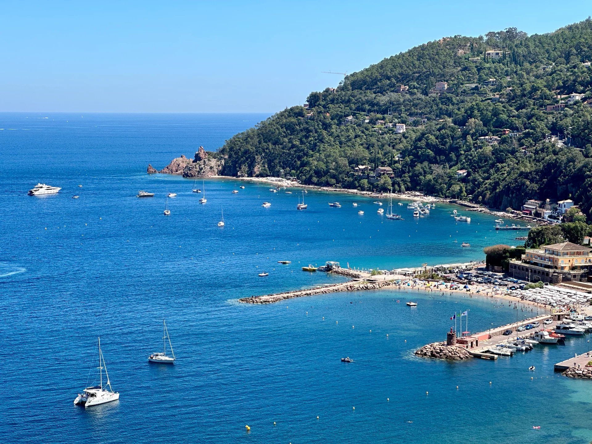 The generous terrace includes both an al fresco dining space and a relaxing lounge area, offering a stunning backdrop of the Mediterranean Sea and verdant hills, in complete tranquility.