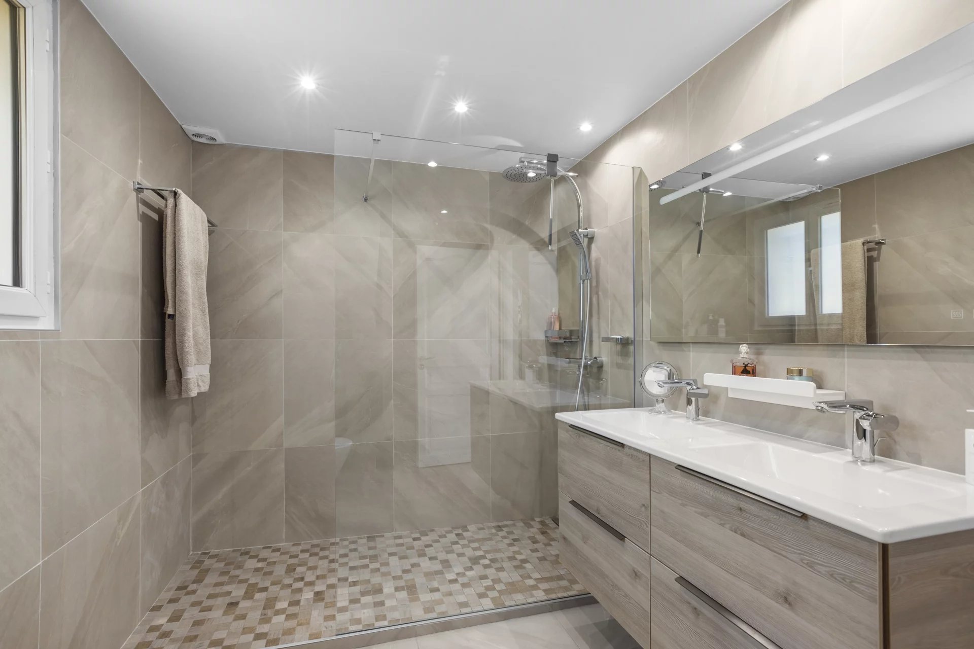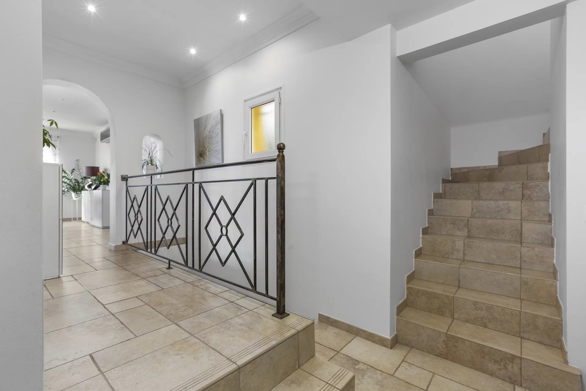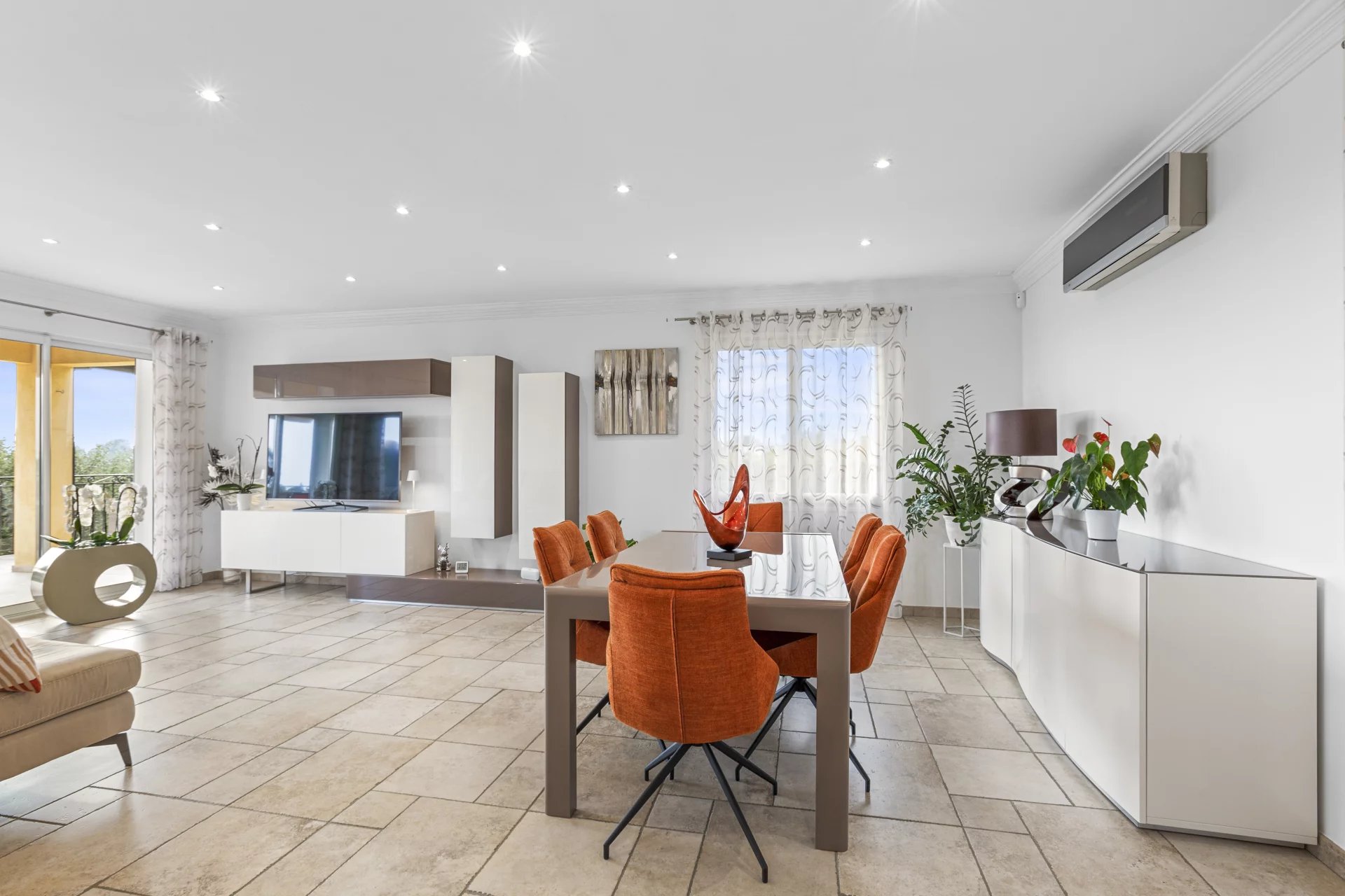 Nestled in a sought-after residential area on the heights of Saint-Laurent-du-Var, this elegant villa offers a peaceful setting with breathtaking views of the sea and the surrounding green hills.