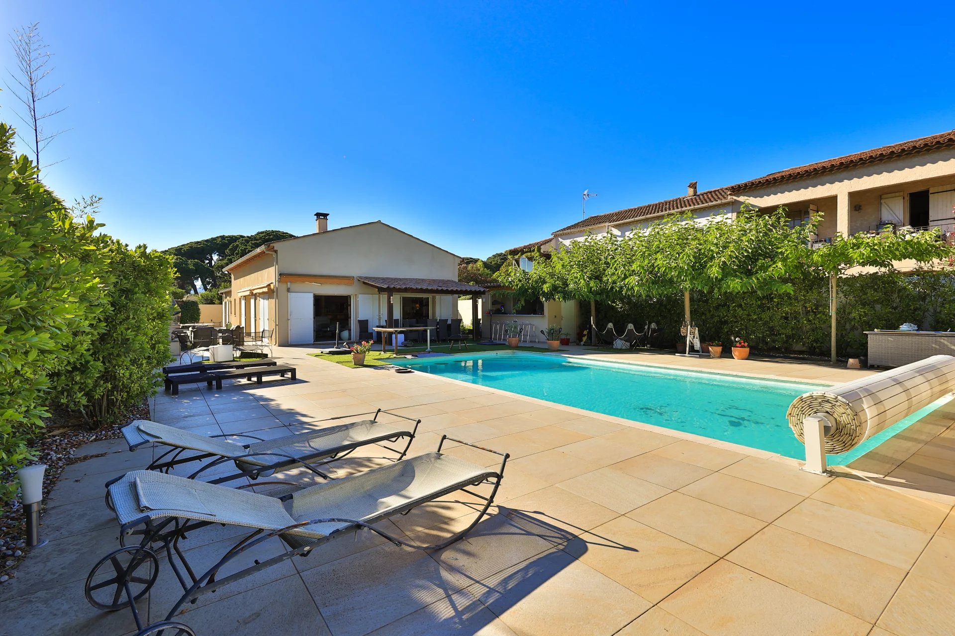 A large independent garage, an outdoor summer kitchen with bar, a 10 x 5 m heated swimming pool that can be covered, complete this villa full of conviviality… with the possibility of creating an upper floor.