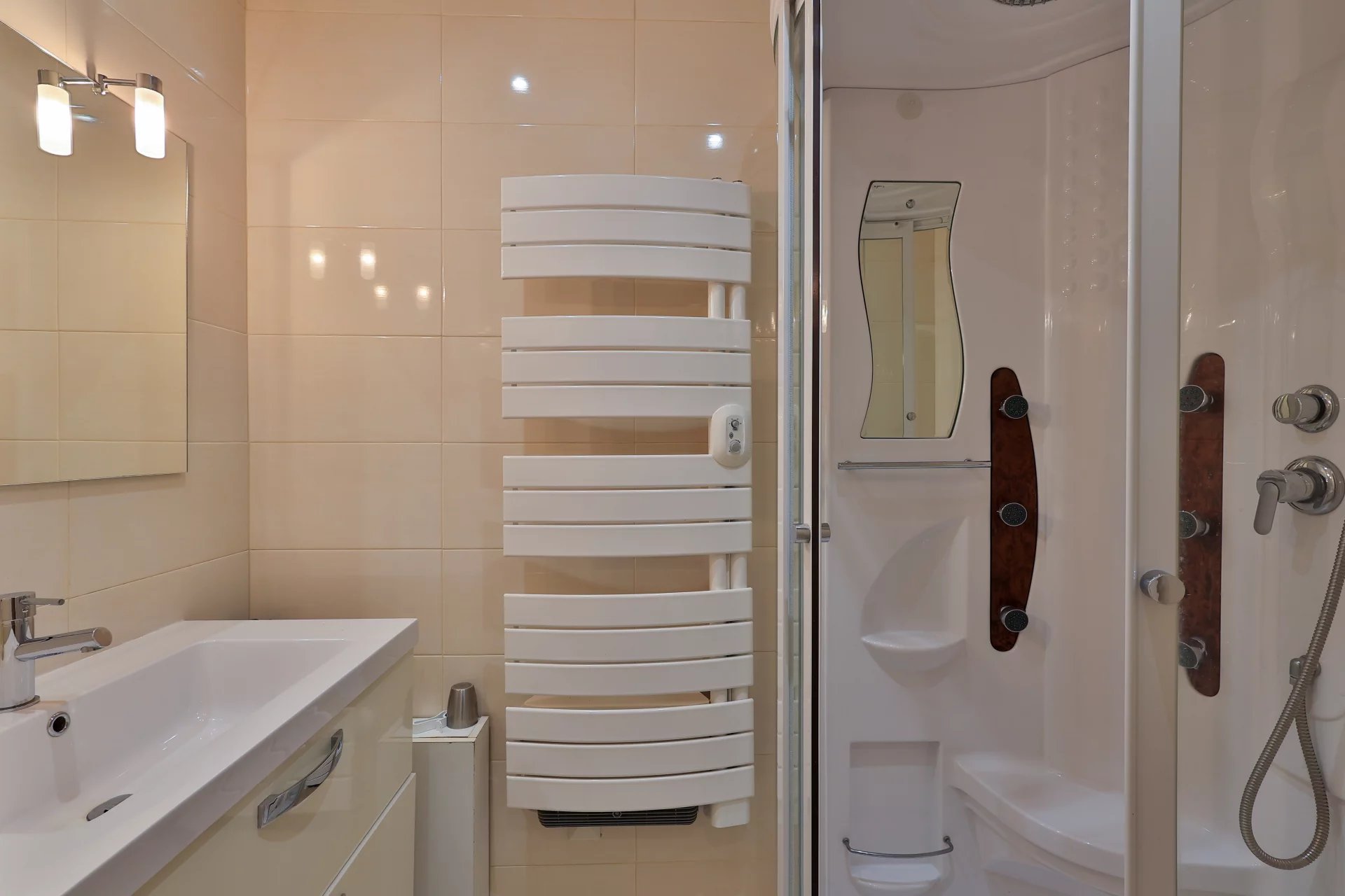 Accommodation consists of a large living room of 75 m2 with US kitchen, laundry room, pantry, 2 bedrooms with their shower rooms, a master bedroom with full bathroom (balneotherapy bath) and dressing room, a garage adjoining the house that can be turned into a bedroom.