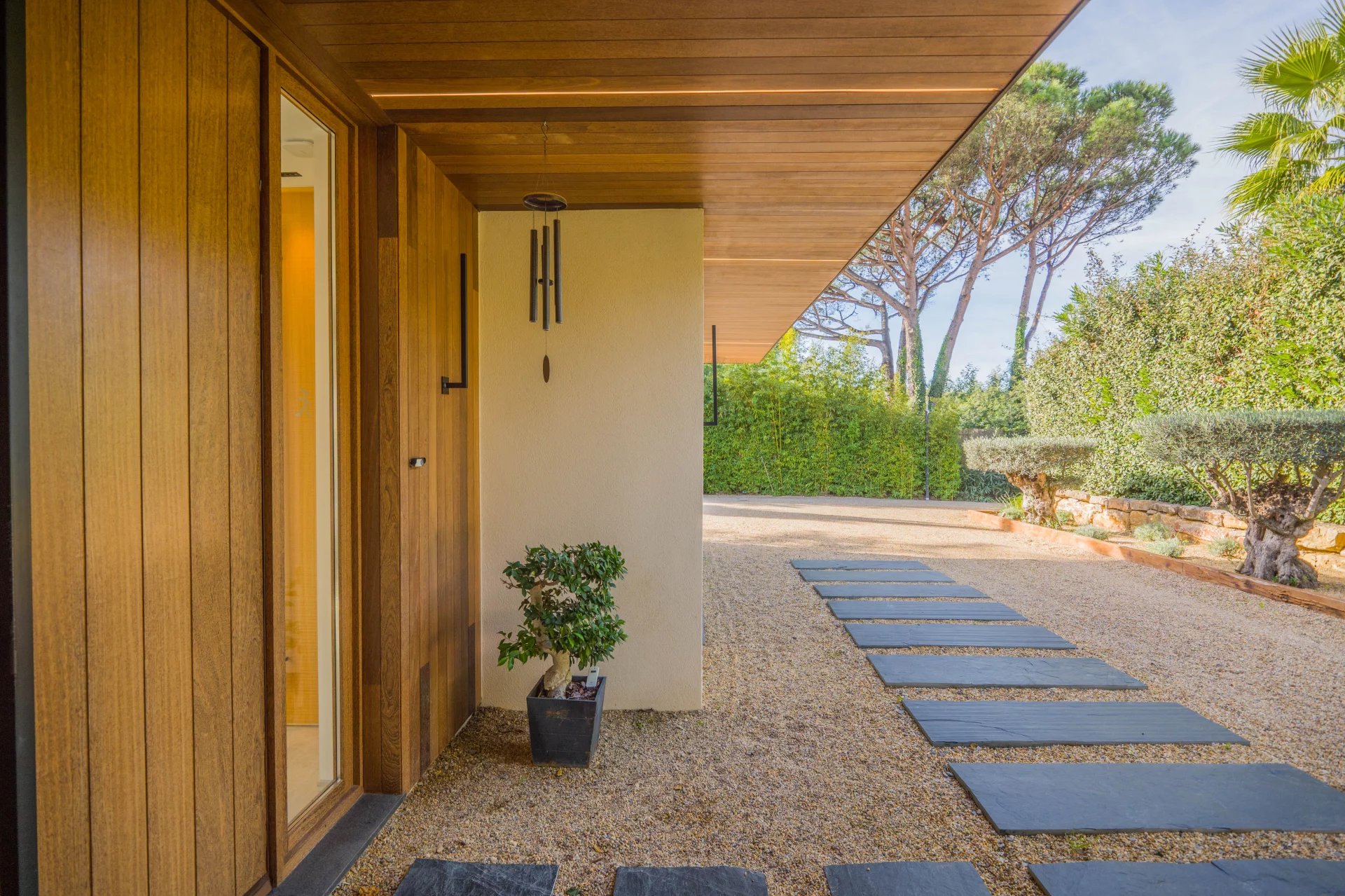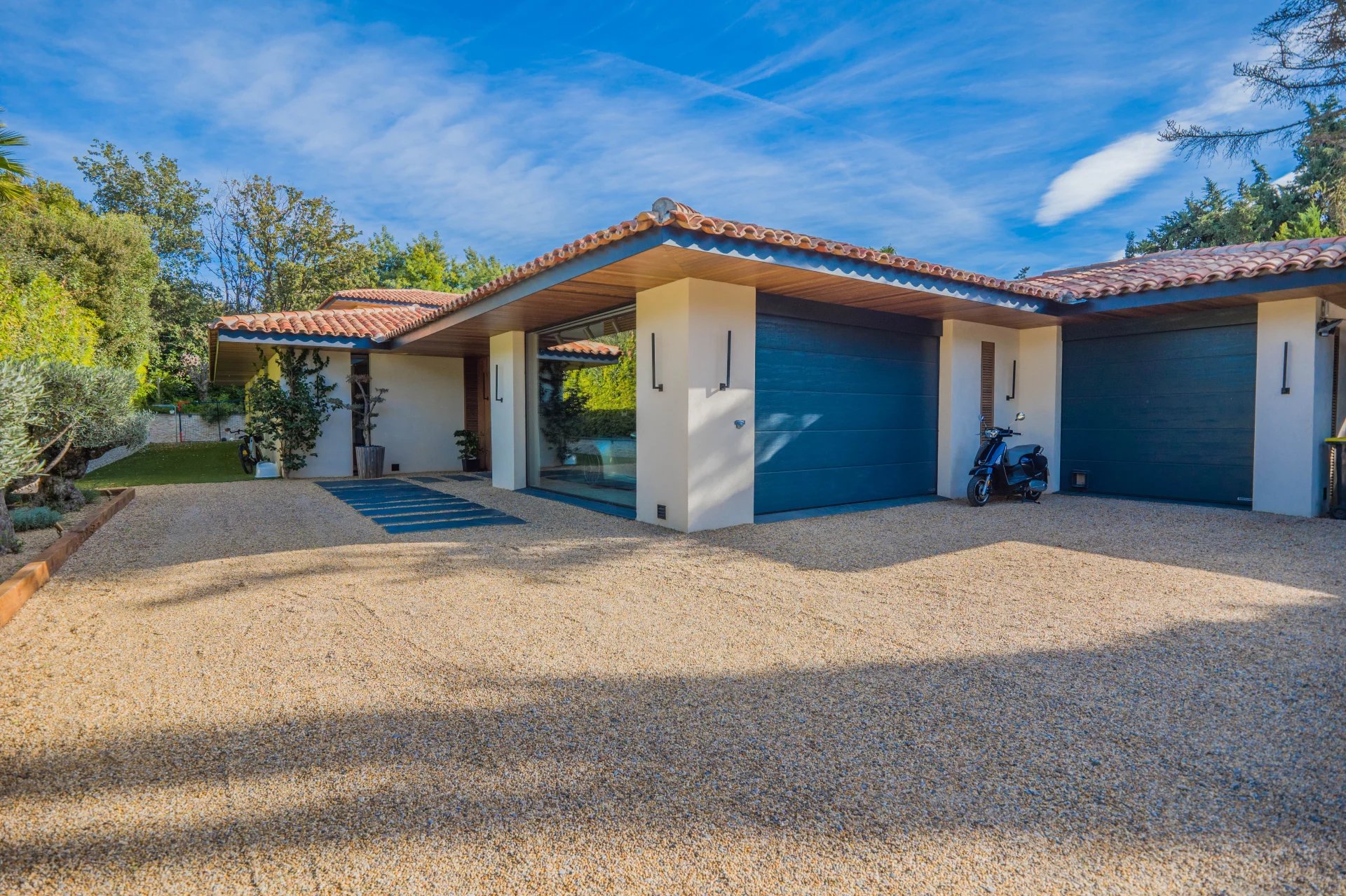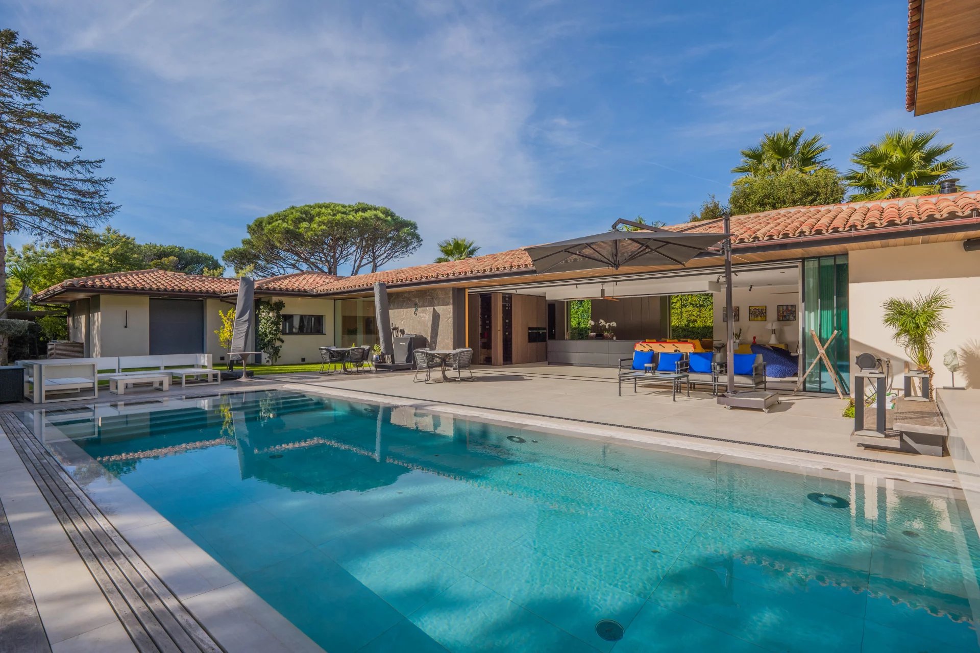 Built on a pleasant 1800m2 flat plot planted with trees, it offers spacious accommodation: a magnificent lounge-dining room and kitchen opening directly onto the terraces and garden, as well as the master bedroom with bathroom and dressing room.
