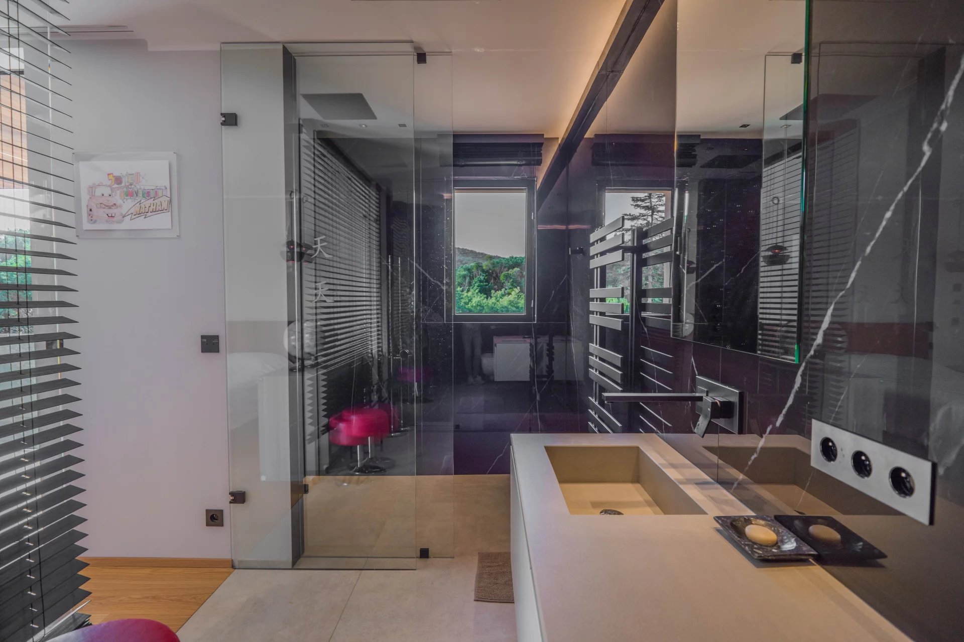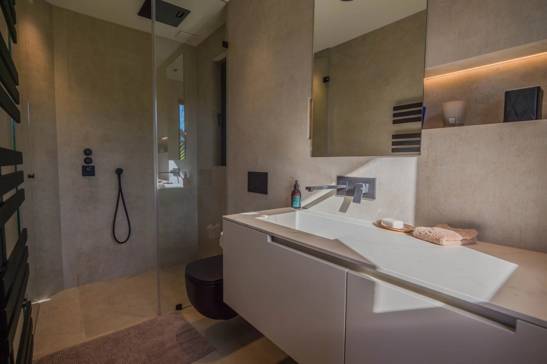 Upstairs are 2 further en suite bedrooms with balconies and the 4th bedroom (40m2) on the lower level.
